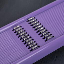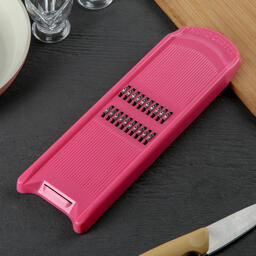 А вы знали, что в салате из корейской морковки находится много витаминов? С помощью удобной и острой овощерезки вы быстро приготовите необходимое количество морковки. Пользоваться очень просто: расположите тёрку над тарелкой, придерживая ручку, двигайте морковкой по режущей поверхности снизу-вверх. Также тёрка идеально подходит, чтобы сделать поджарку для супа. Кухонный помощник поможет приготовить любимые салаты из редиса, огурца, яблока, лука, капусты и много другого. Размер изделия 33×12 см