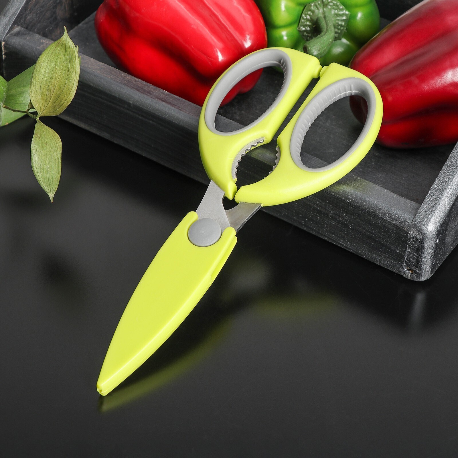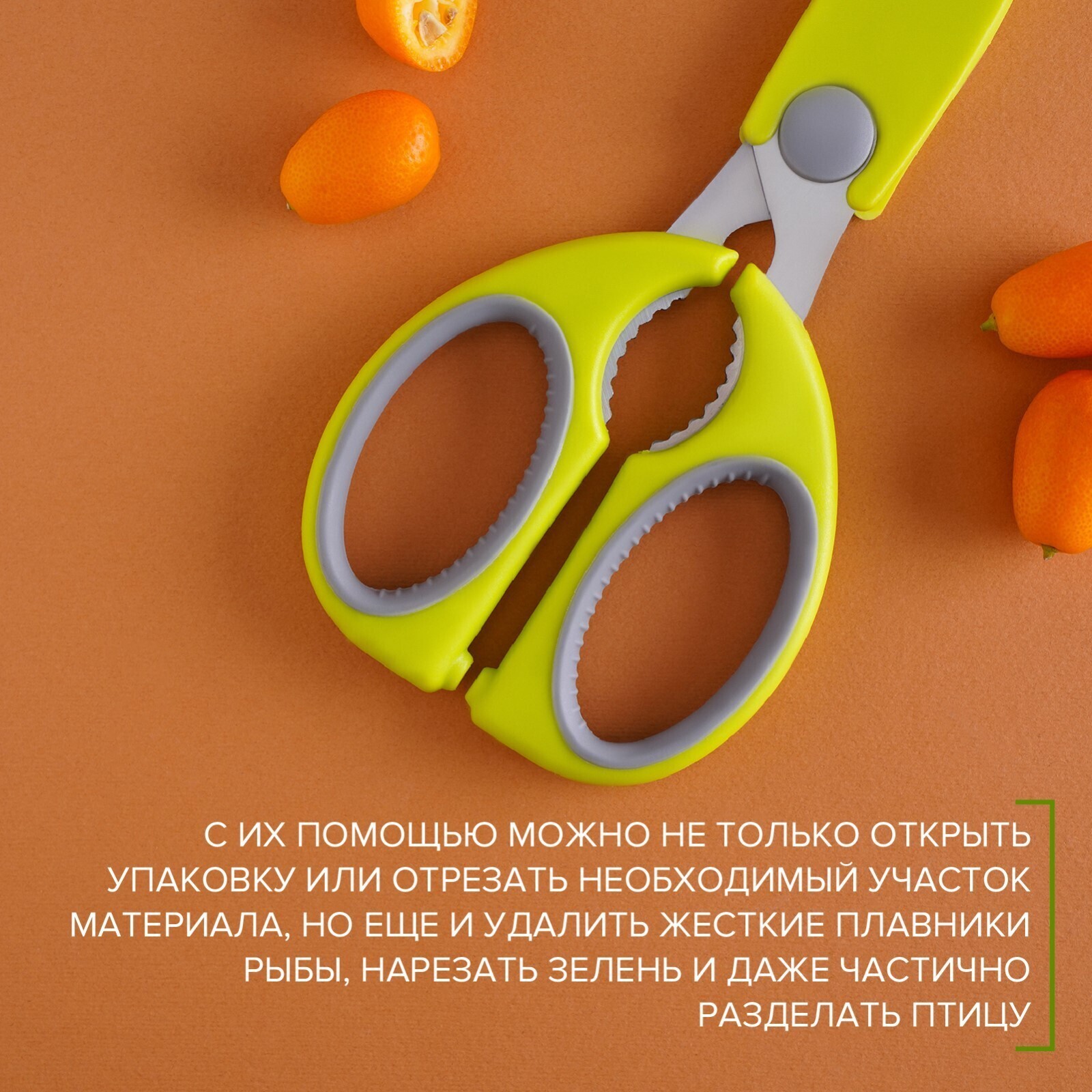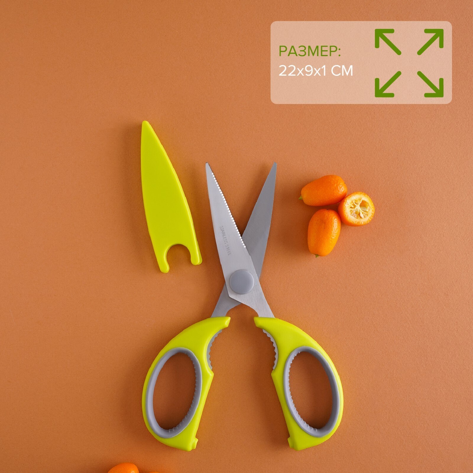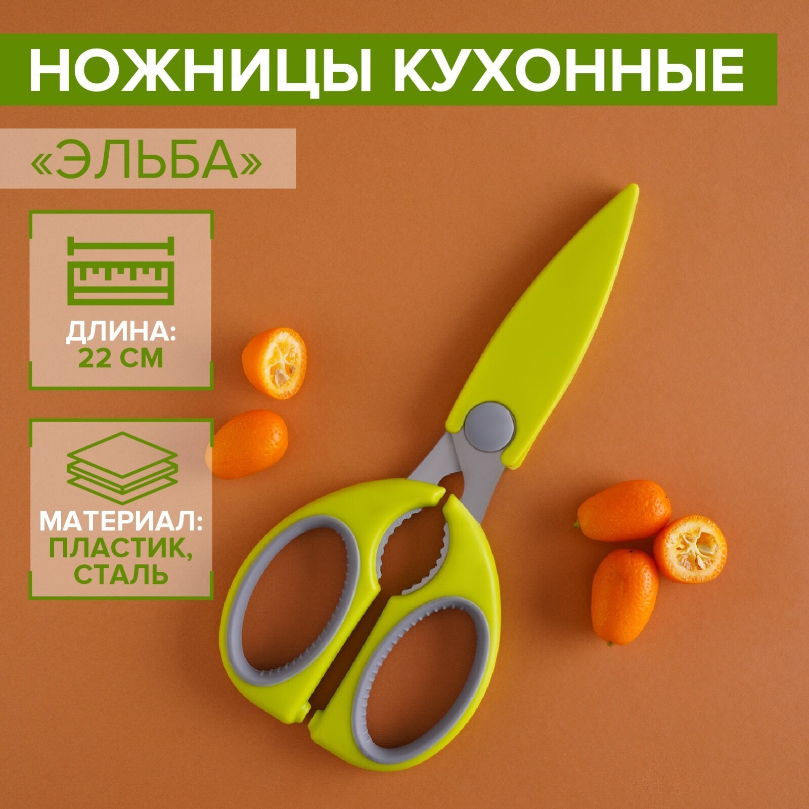 Ножницы кухонные Доляна «Эльба», 22 см, цвет зелёный