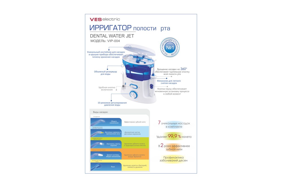 Ирригатор VES VIP-004 18Вт 10 уровней 7 насадок 600мл