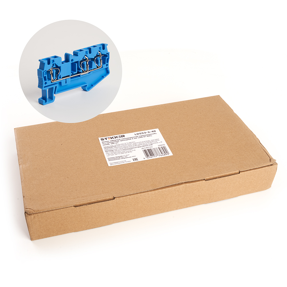 Зажим пружинный, 3-проводной проходной ЗНИ - 4.0 (JXB ST 4), синий STEKKER 39970