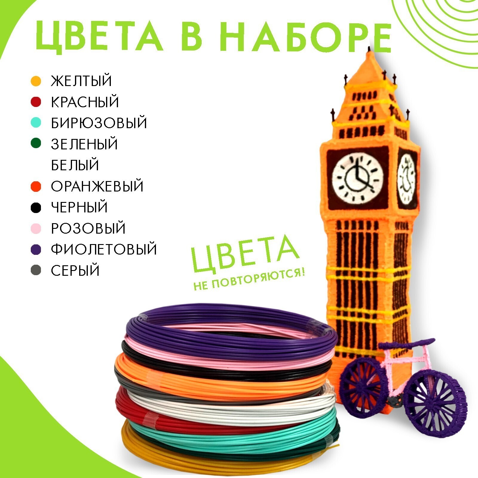 Пластик для 3D ручки AmazingCraft, ABS, 10 цветов по 10 м