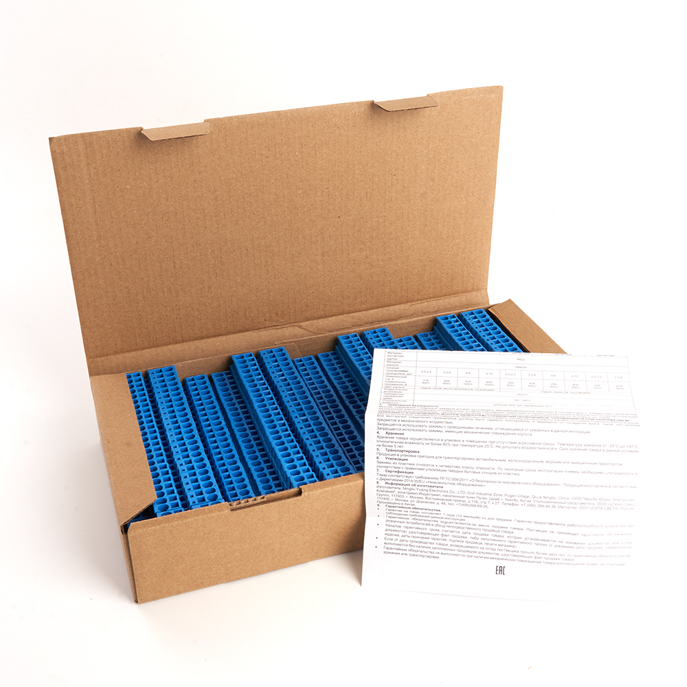 Зажим пружинный, 4-проводной проходной 2 уровня ЗНИ - 2,5 (JXB ST 2,5), синий STEKKER 39973