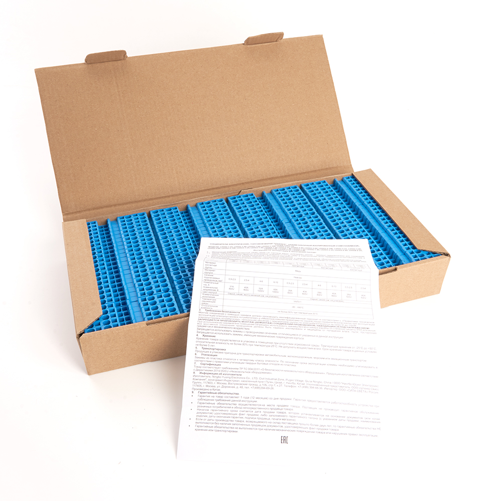 Зажим пружинный, 4-проводной проходной ЗНИ - 2,5 (JXB ST 2,5), синий STEKKER 39971