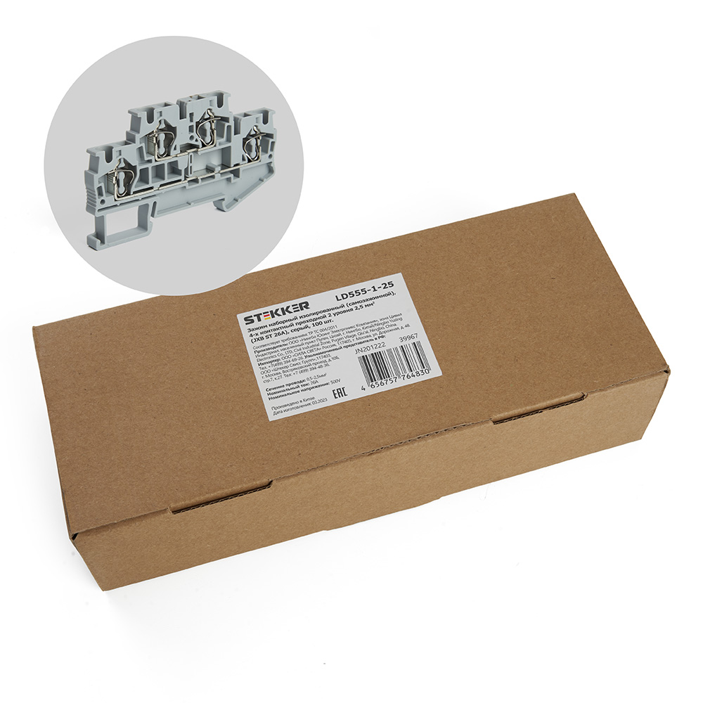 Зажим пружинный, 4-проводной проходной 2 уровня ЗНИ - 2,5 (JXB ST 2,5), серый STEKKER 39967