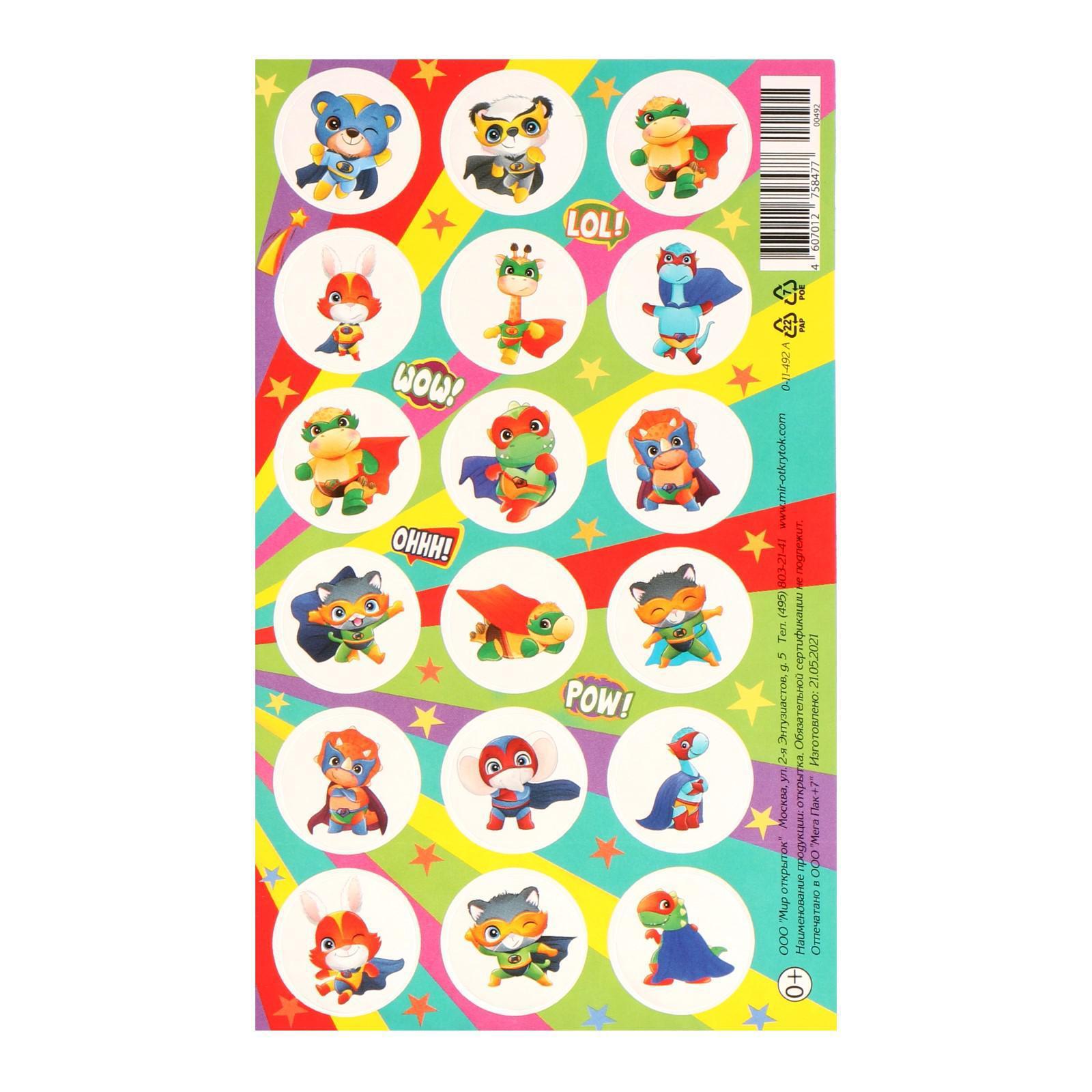 Наклейки поощрительные "Суперзверята" разноцветный фон, 10 х 16 см