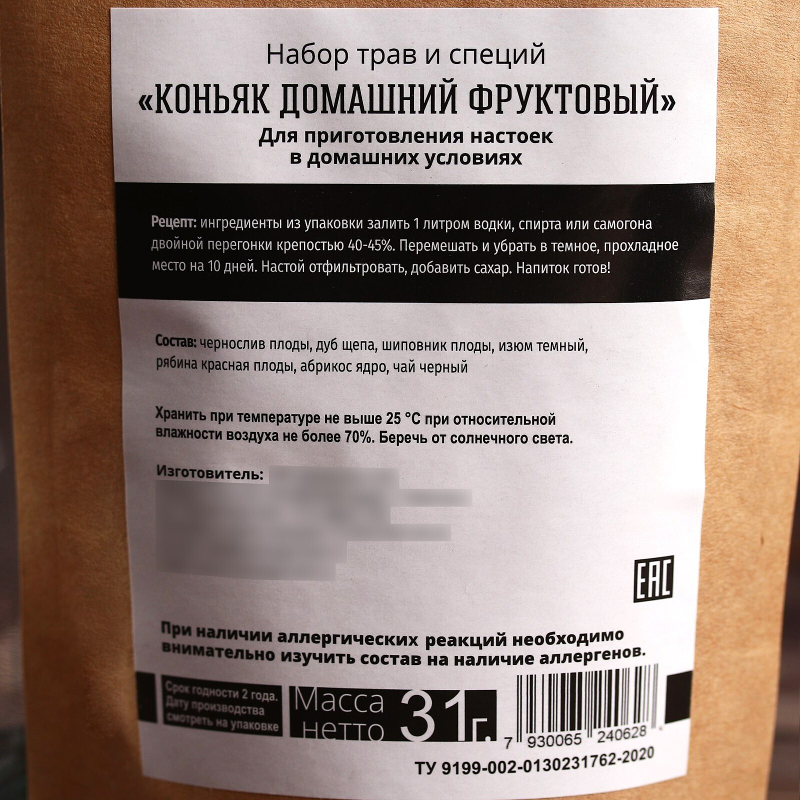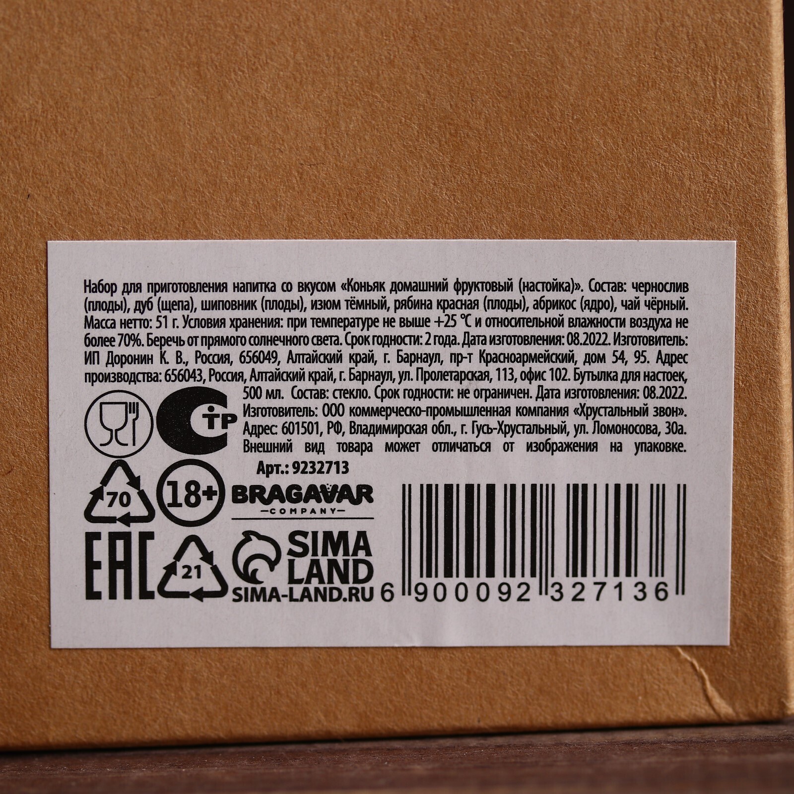 Набор для приготовления алкоголя «Топливо для души»: бутылка 500 мл., набор трав и специй коньяк фруктовый 32 г.