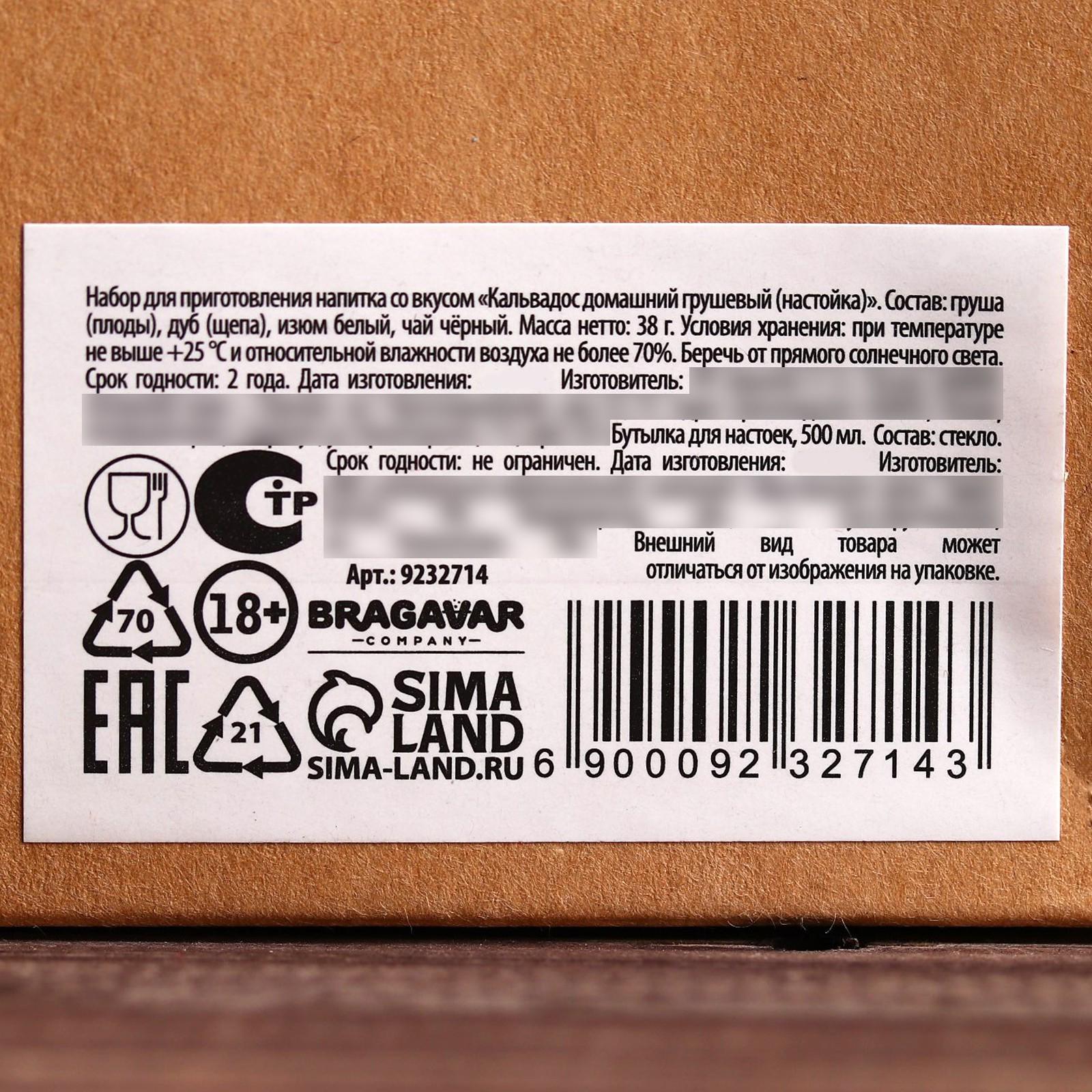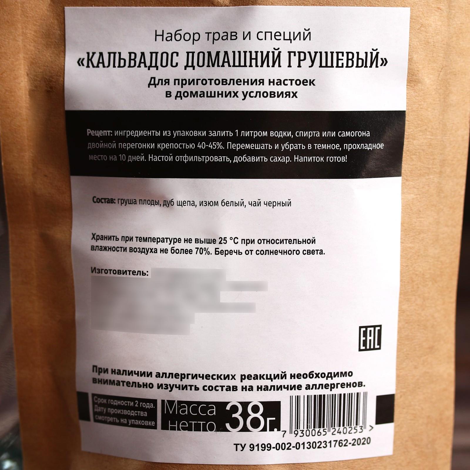 Набор для приготовления алкоголя «Кальвадос грушевый »: бутылка 500 мл., набор трав и специй 38 г.