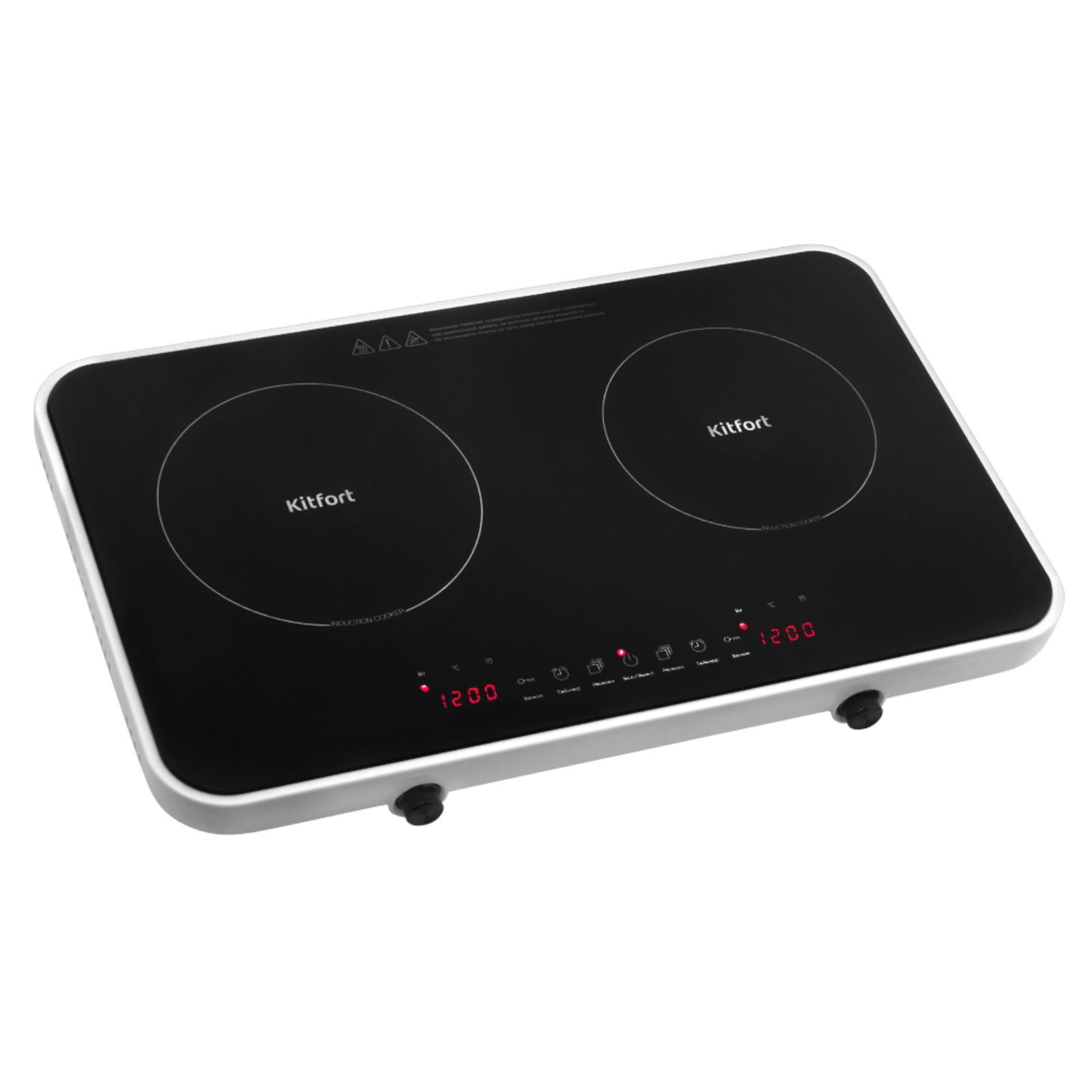 Плитка индукционная Kitfort КТ-136, 1600 Вт, 2 конфорки, таймер, регулятор, чёрная