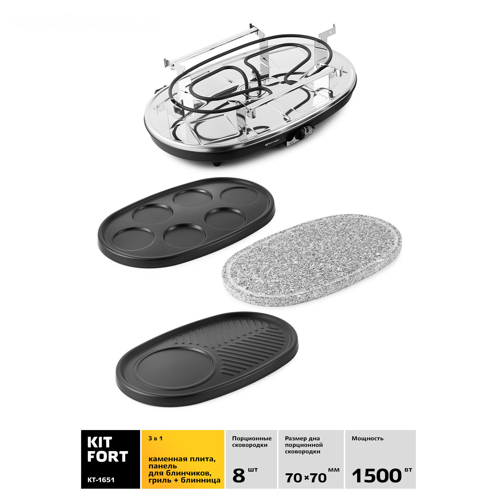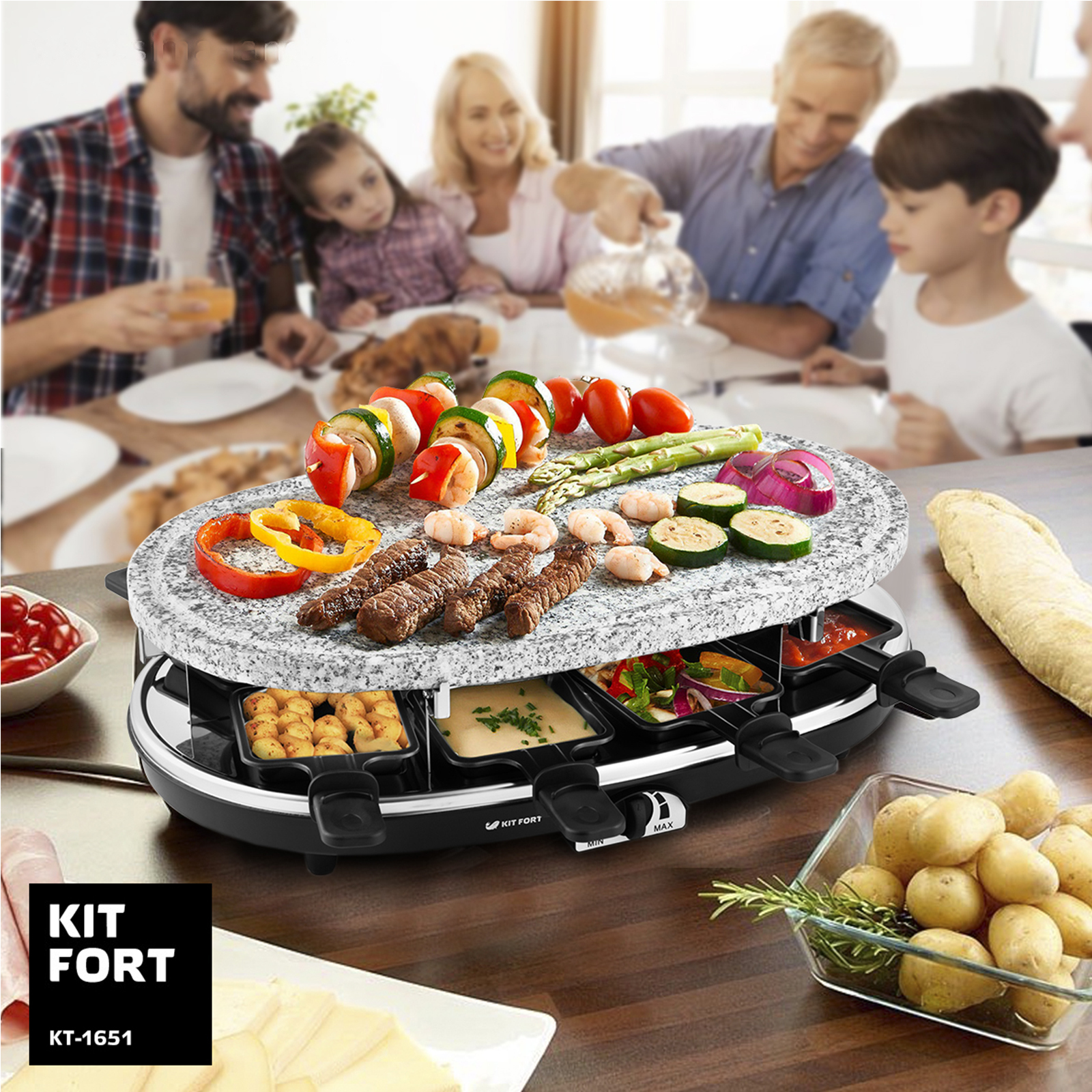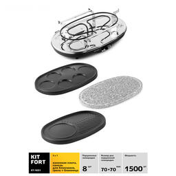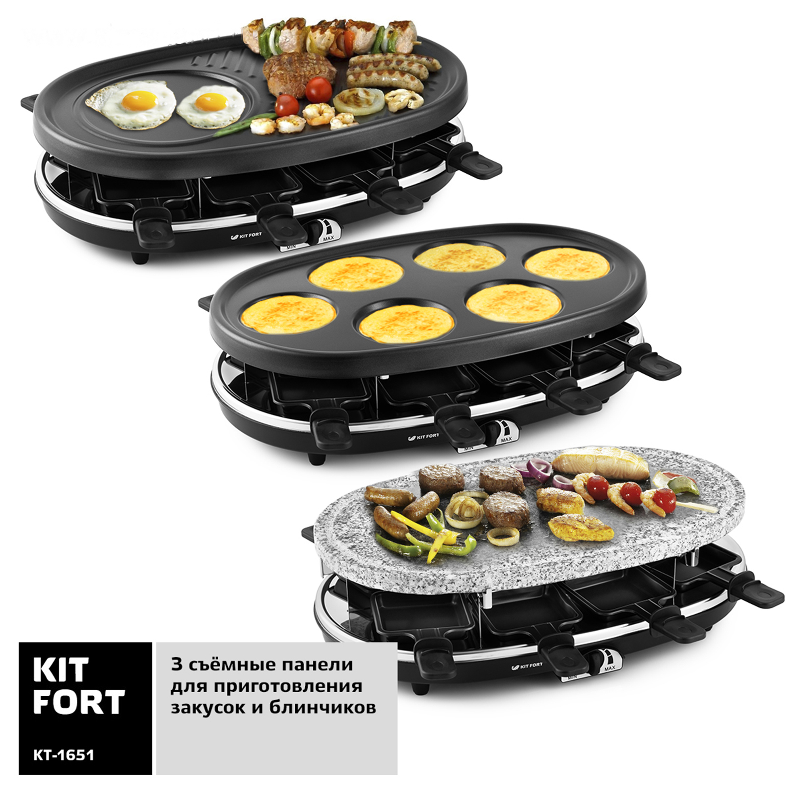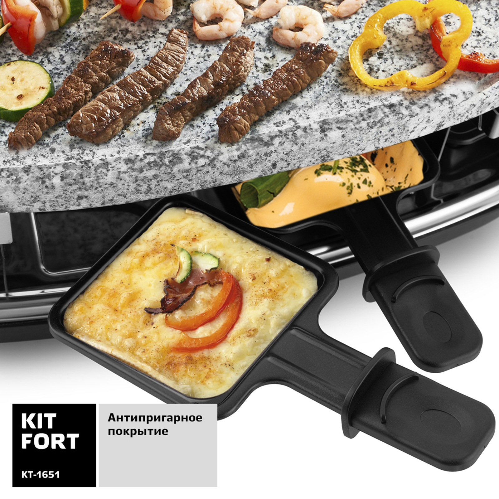 Электрогриль Kitfort KT-1651, раклетница, 1500 Вт, 8 сковородок, 7х7 см, чёрная