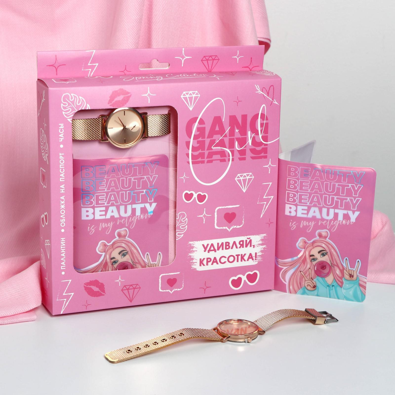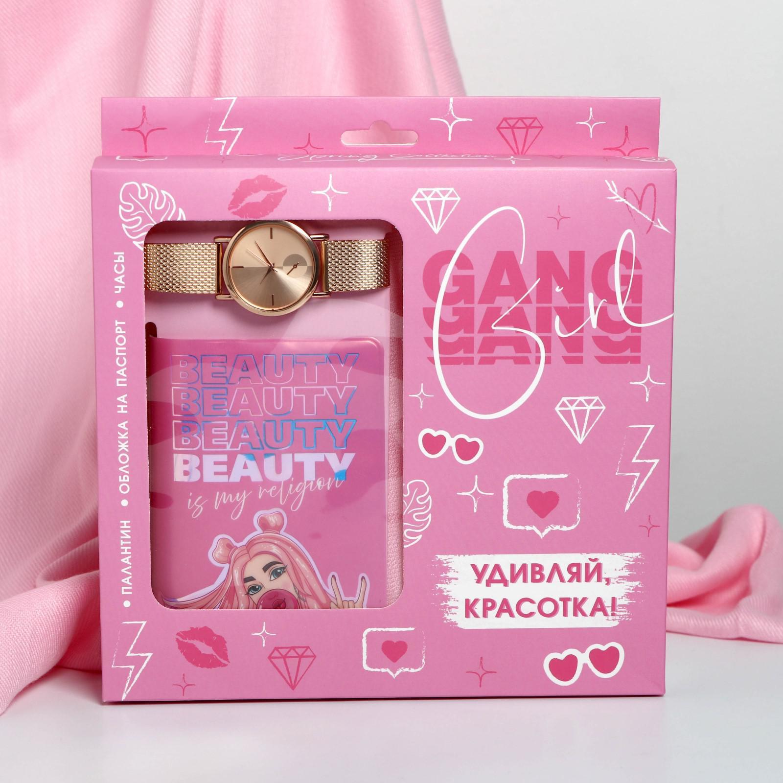 Набор "Girl gang", мягкий палантин, обложка для паспорта и наручные часы