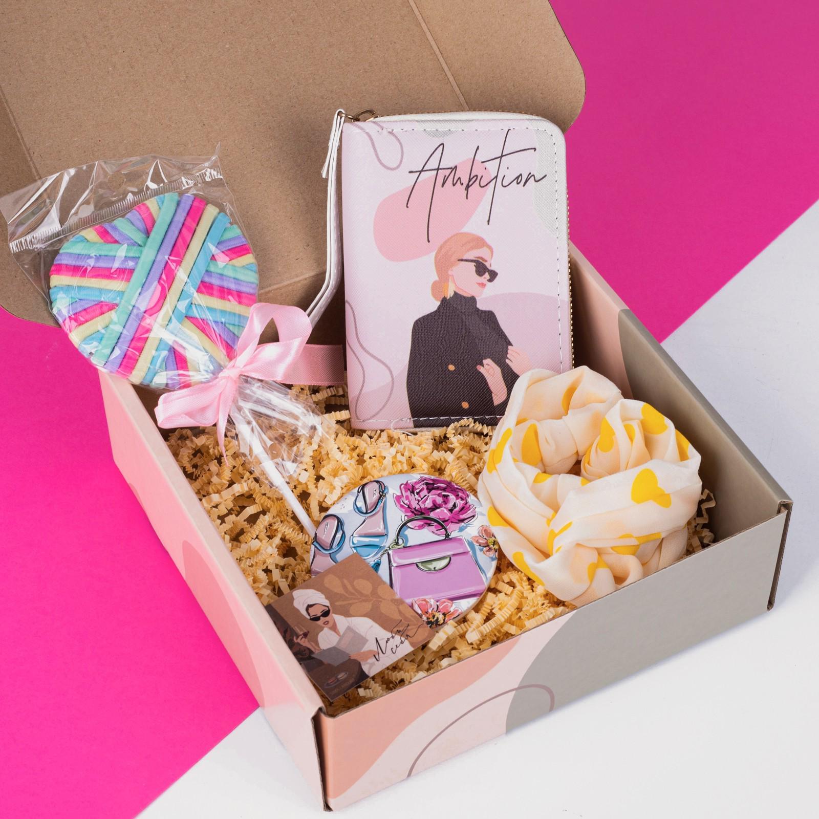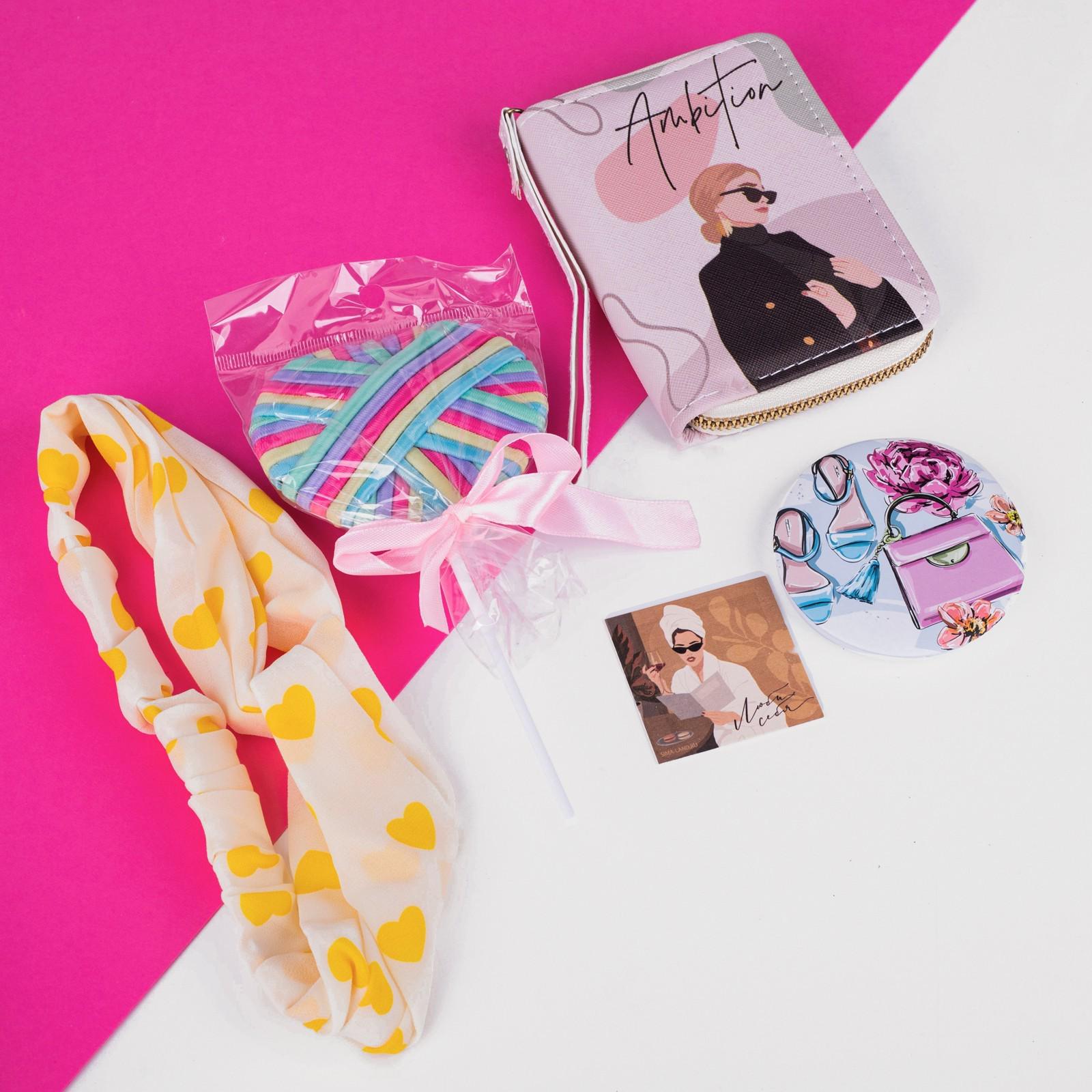 • Составляющие набора Кошелёк, Открытка, Повязка, Резинка