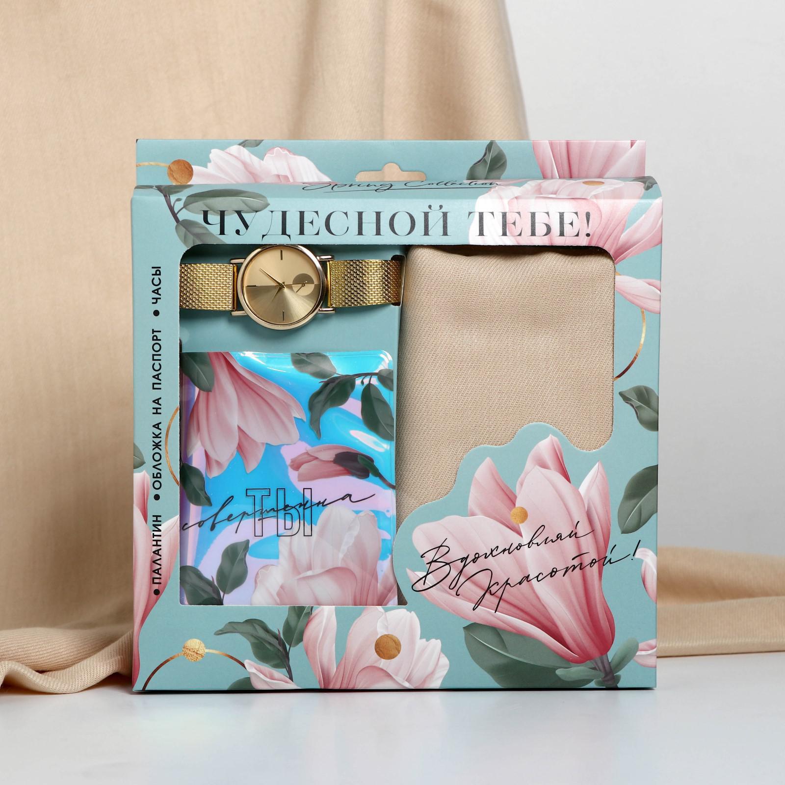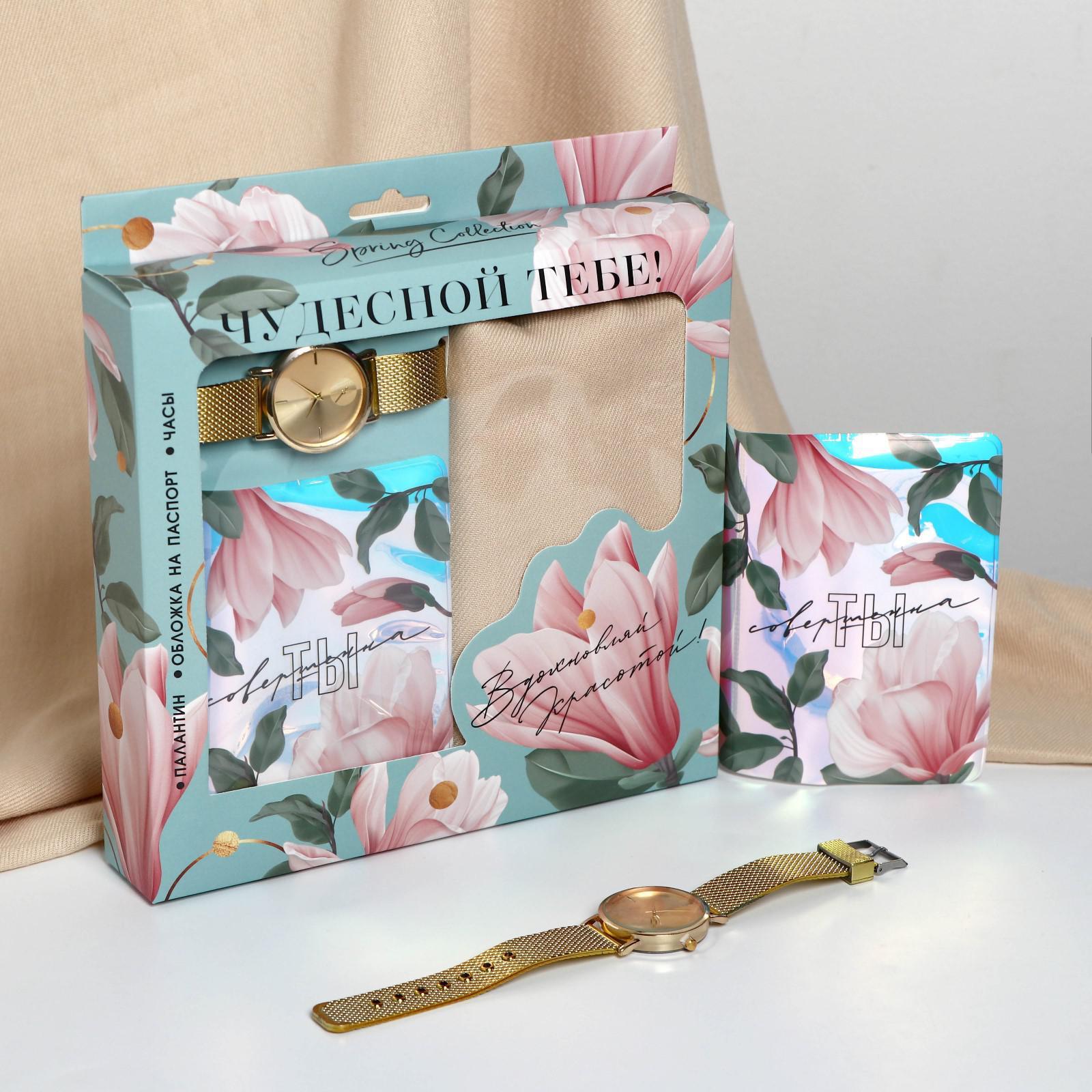 Набор "Чудесной тебе!", мягкий палантин, обложка для паспорта и наручные часы