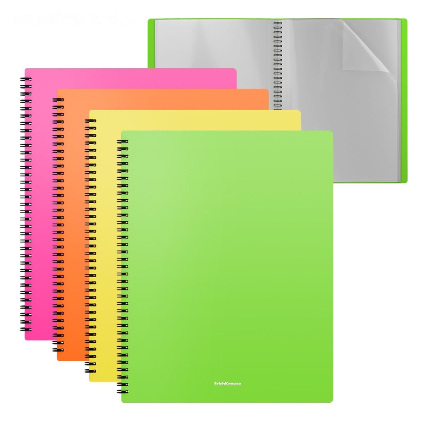 Папка с 40 вкладышами А4, 550 мкм, ErichKrause Matt Neon, спираль, микс