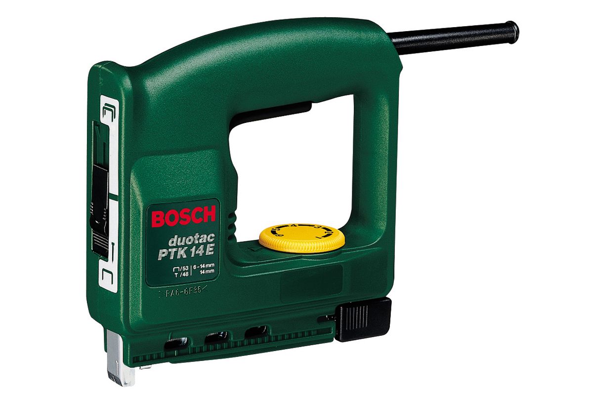 Степлер BOSCH PTK 14 E - это высокоэффективный ручной электроинструмент, предназначенный для выполнения быстрого закрепления пленки, изоляционного материала, текстильных обоев и т.п. Широко применяется при производстве строительно-ремонтных, крепежных и обивочных работ.