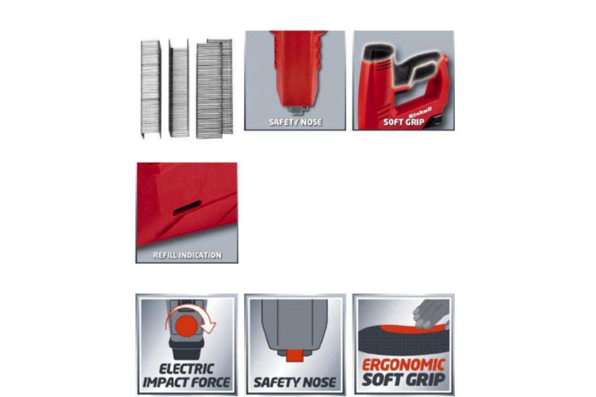 Степлер электрический является универсальным устройством для дома, мастерской или ремесленной комнаты. Мощность удара регулируется электроникой, позволяя аккуратно работать с материалами разной плотности. Предохранительный наконечник предотвращает случайное срабатывание. Уровень заполнения магазина легко контролировать. Инструмент прост и удобен в использовании: рукоятка максимально повторяет форму руки, позволяя работать длительное время без усталости, а мягкие прорезиненные накладки обеспечивают надежный хват без проскальзывания руки.