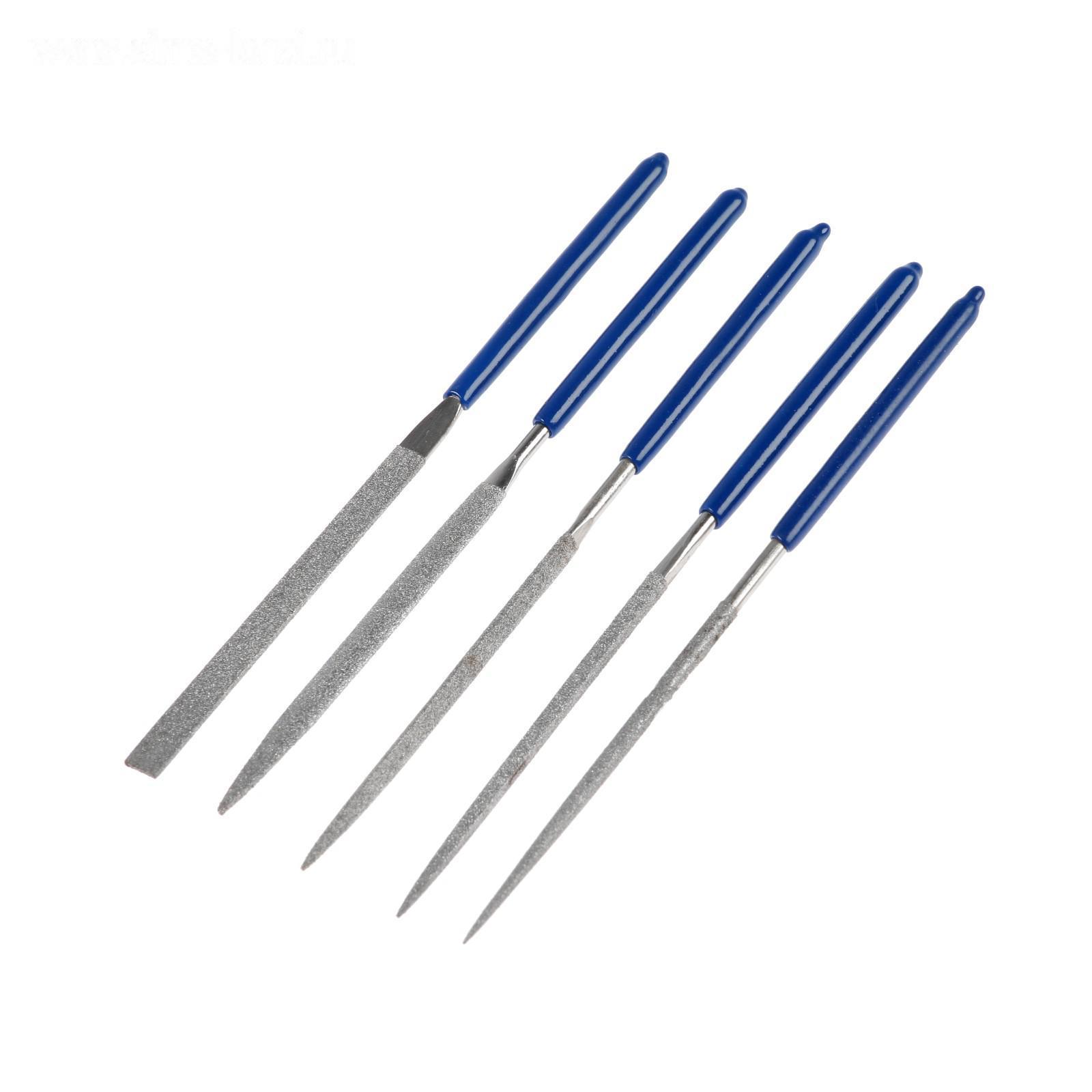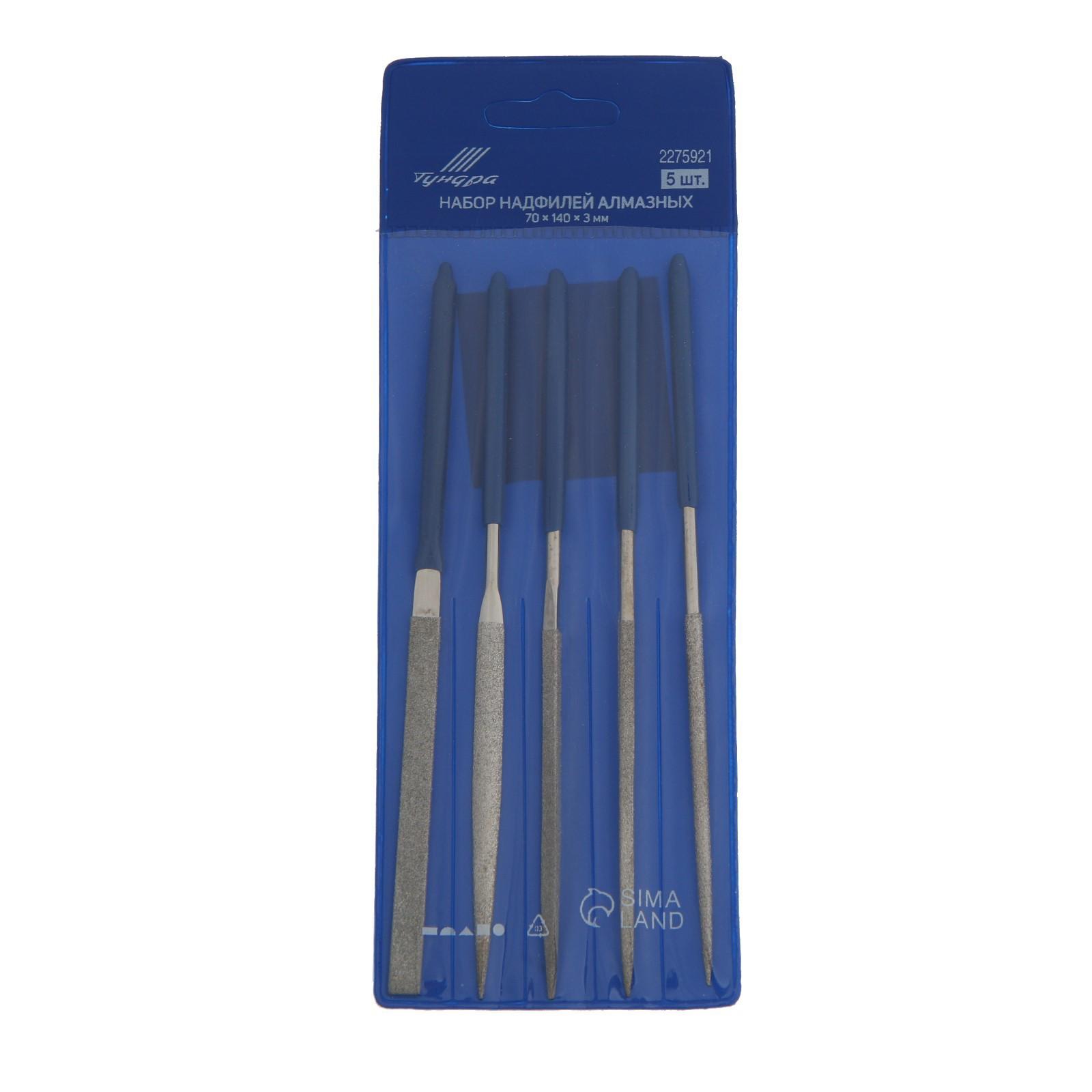 Набор надфилей алмазных ТУНДРА, обрезиненные рукоятки, 70 х 140 х 3 мм, 5 шт.
