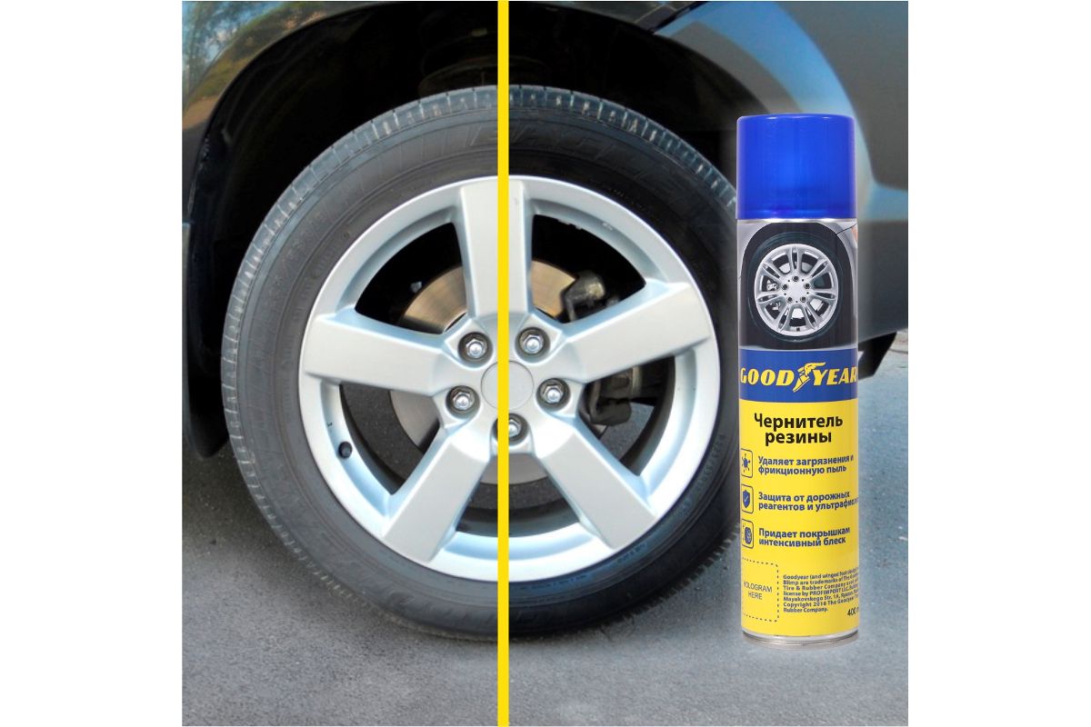Чернитель резины Goodyear применяется для очищения и улучшения внешнего вида резины автомобиля.