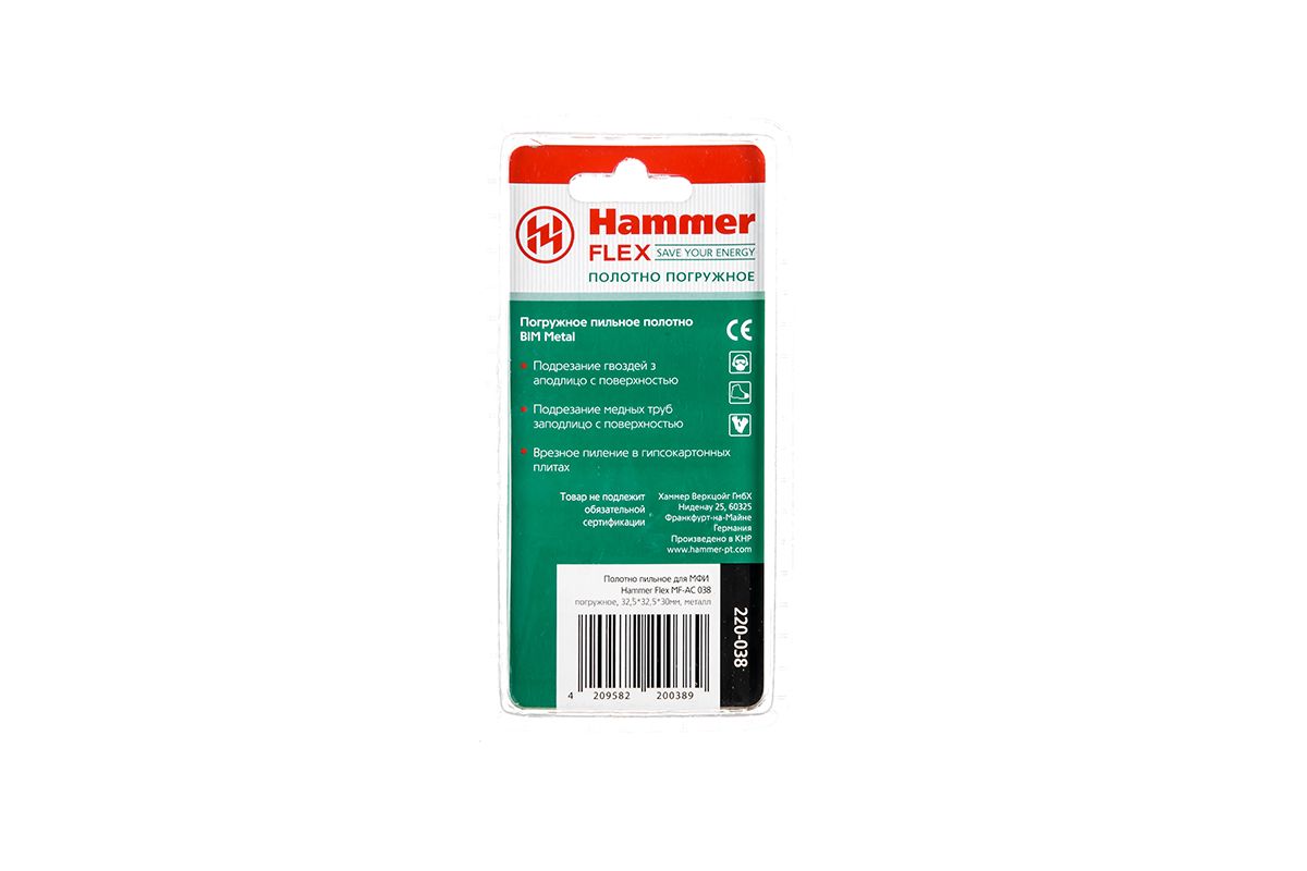 Полотно пильное для МФИ Hammer Flex 220-038 MF-AC 038 погружное, BIM, 32,5*32,5*30мм, металл/дерево