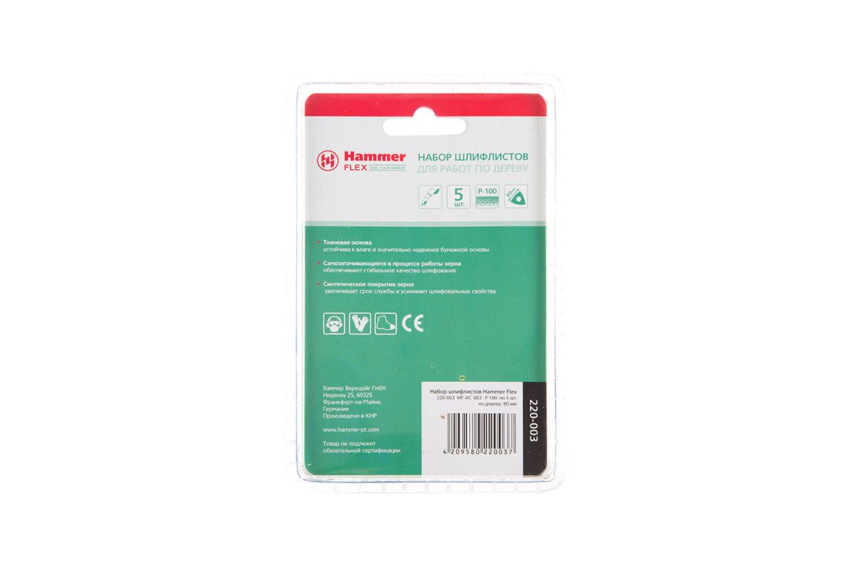 Набор шлифлистов Hammer Flex 220-003 MF-AC 003 Р 100 по 5 шт. по дереву, 80 мм