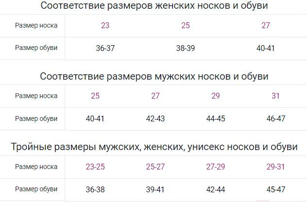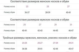• Размер носков (RU) 25–27