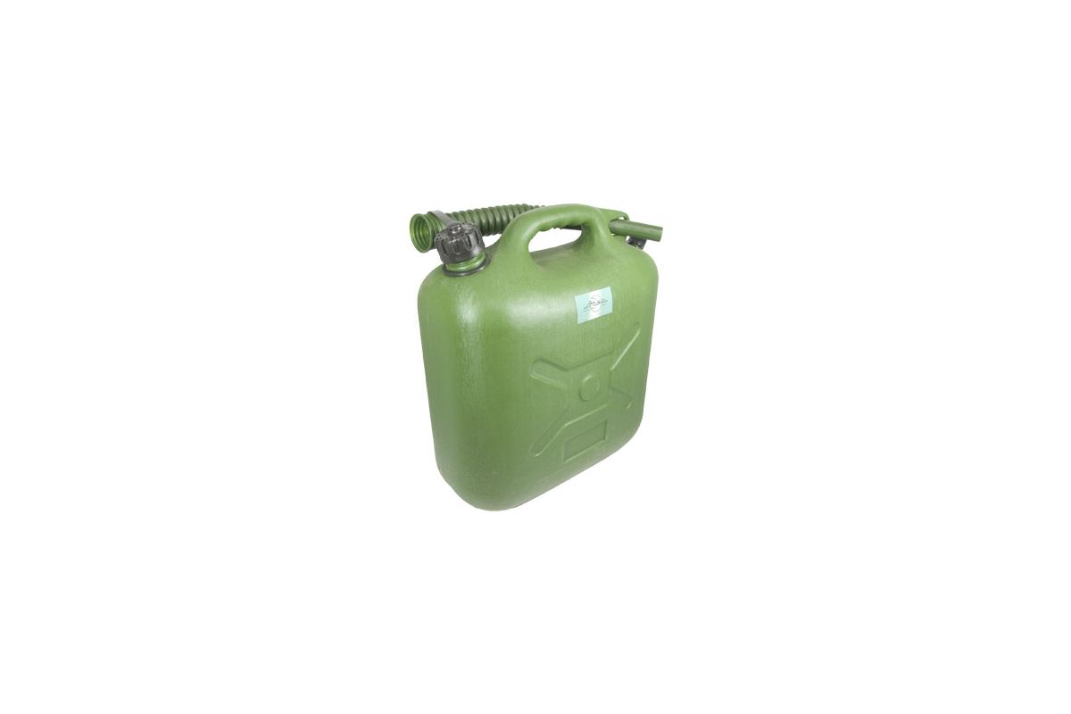 Канистра для содержания бензина. Изготовлена из пластика. Имеет съемный гибкий наконечник. Диаметр отверстия - 28мм.