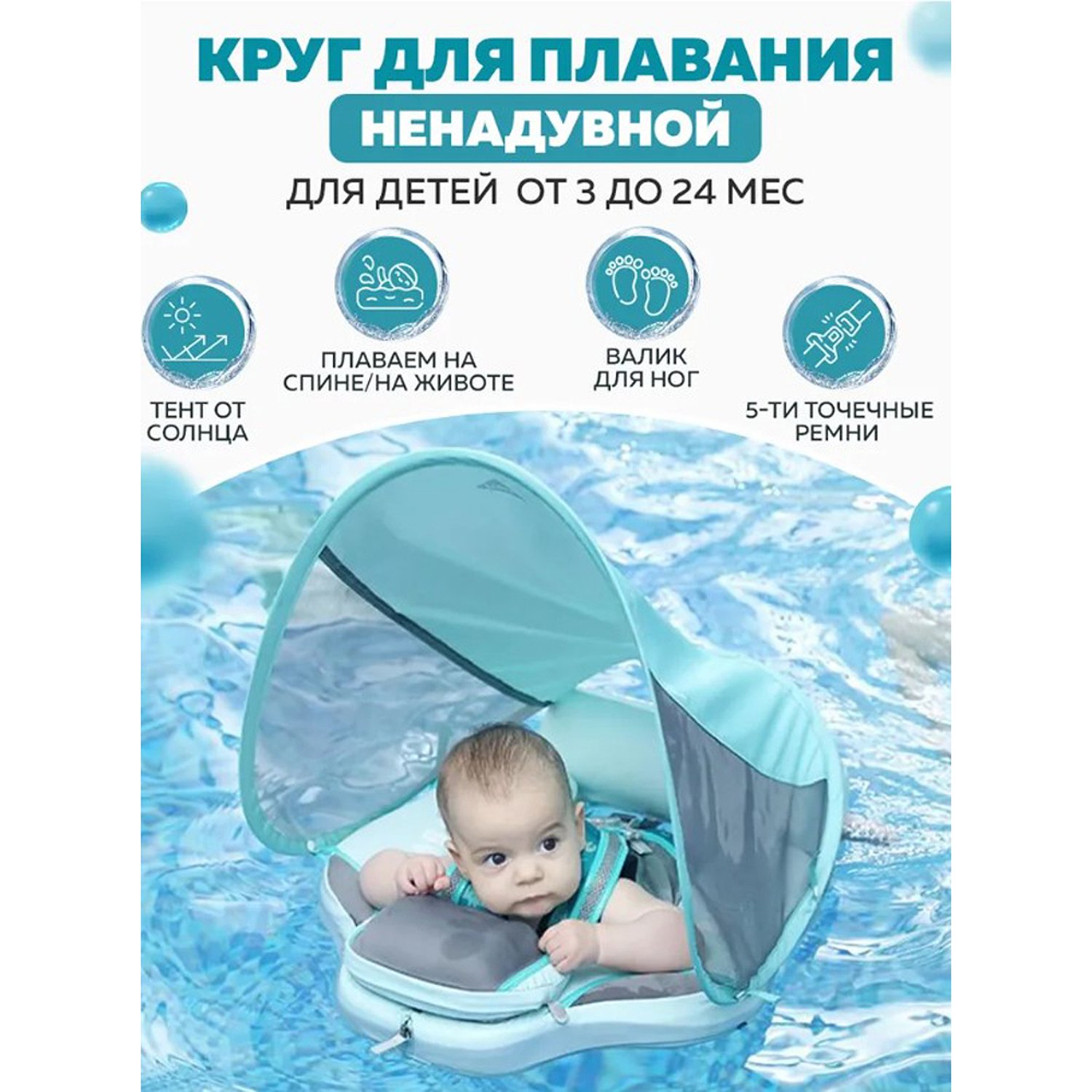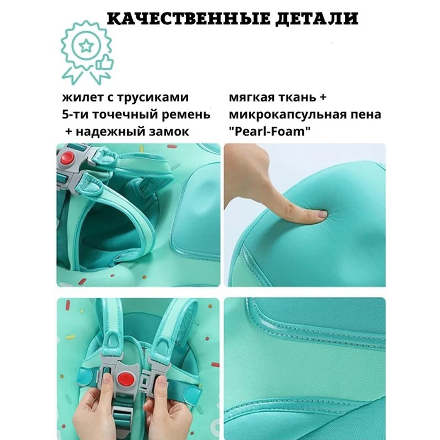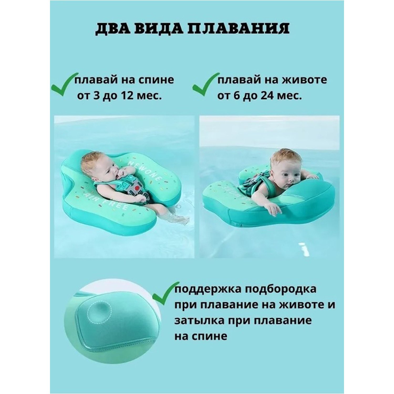 Круг для плавания детский Newone с трусами и навесом 3-24 месяца. Ненадувной круг для плавания для малышей krug-valik-kozhirek-B503-12green
