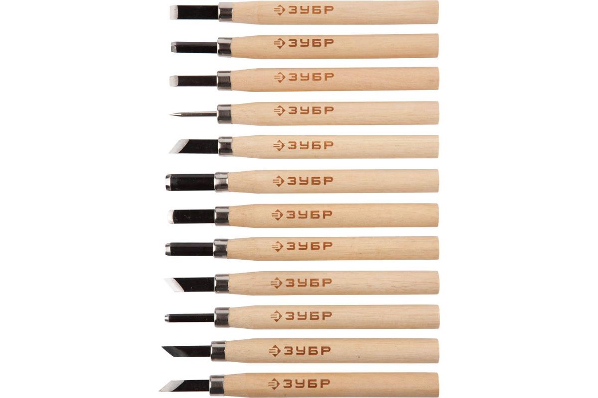 Резцы фигурные ЗУБР 18375-H12 ЭКСПЕРТ с деревянной ручкой 12 шт