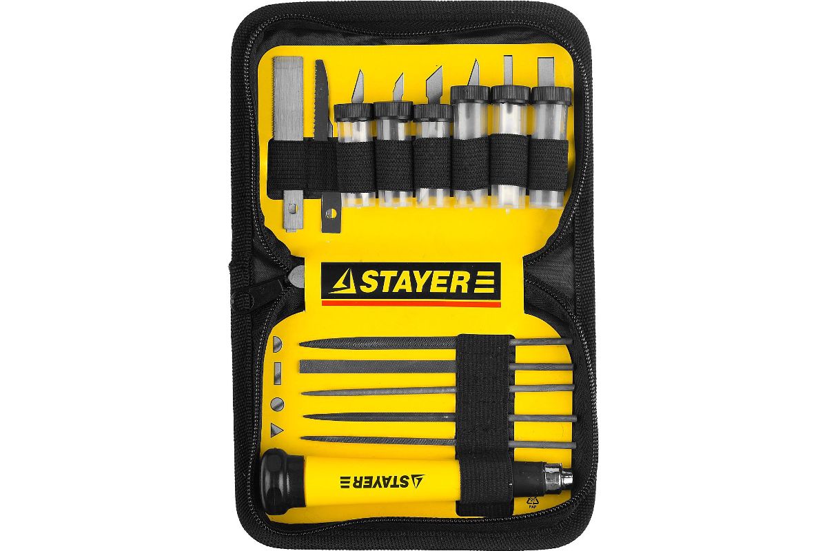 Набор STAYER “MASTER” 09145-H38 для точных работ:нож+ лезвия разл.формы+ надфили+ чехол 38предм.