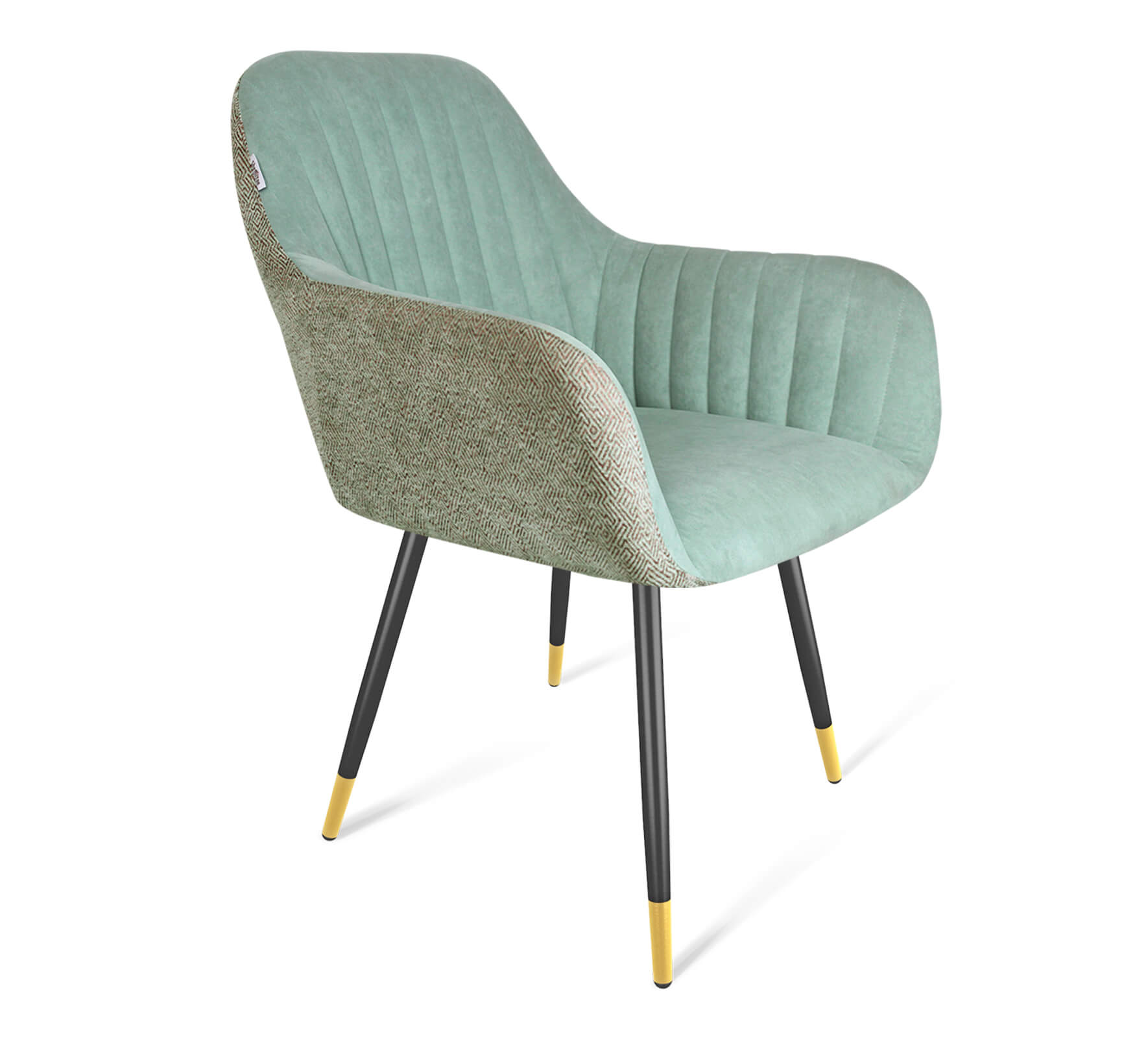 СТИЛЬНЫЙ ДИЗАЙН Благодаря миксу двух тканей микровелюру и твиду, готовое кресло станет изюминкой интерьера! Оригинальность твида заключается в текстуре, состоящей из 5 оттенков нити. Это залог сложного цвета, но в то же время легкого восприятия. На контрасте два цвета нежный мятный и пикантный оранжевый. Оригинальную нотку каркасу придают конусообразные ножки с золотым напылением в нижней части каркаса. Четкое разделение черного и золотого прекрасно гармонируют с мягкими сидениями Sheffilton и основанием для стола в аналогичном стиле SHT-TU14 черный муар/золото.