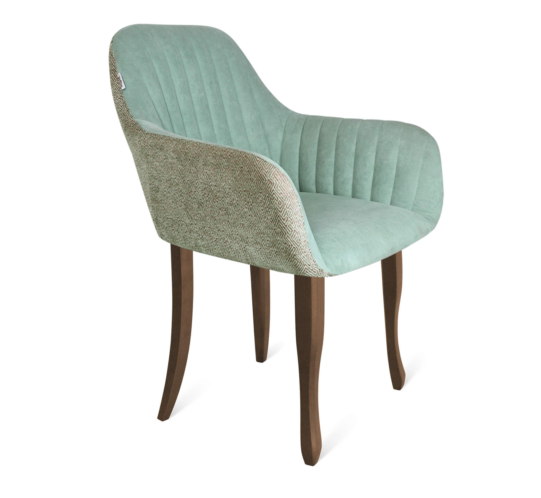 СТИЛЬНЫЙ ДИЗАЙН Благодаря миксу двух тканей микровелюру и твиду, готовое кресло станет изюминкой интерьера! Оригинальность твида заключается в текстуре, состоящей из 5 оттенков нити. Это залог сложного цвета, но в то же время легкого восприятия. На контрасте два цвета нежный мятный и пикантный оранжевый. Оригинальную нотку каркасу придают ножки с заметным волнообразным изгибом.