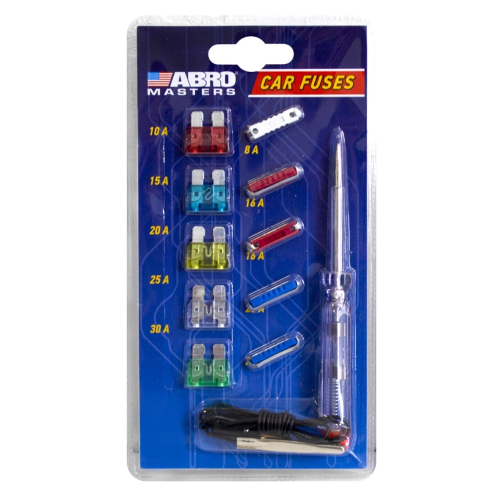 Набор предохранителей ABRO с индикаторной отверткой, Флажковые, Евро, 10 шт
