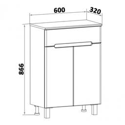 Тумба в ванную (полупенал) с одним выдвижным ящиком и двумя распашнымидверками.
