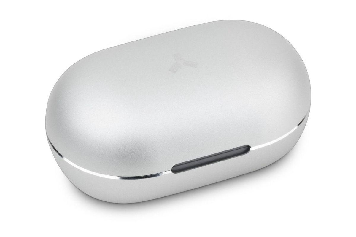 Наушники в крепком металлическом кейсе. Весят удивительно мало — 33 г кейс и по 3,9 г каждый наушник. Лаконичный и компактный кейс длиной 6 см оценят любители минимализма. Гаджет поддерживает технологию Bluetooth 5.1. Благодаря этому аккумулятор расходуется экономично, звук воспроизводится чисто и без задержек.