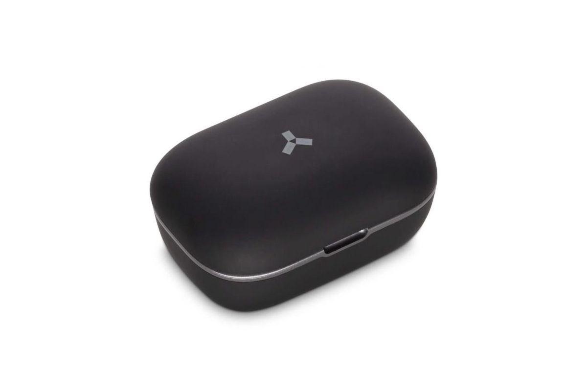 - Подзарядка не потребуется в течение примерно четырёх часов, после чего просто подключите наушники к кейсу – он служит внешним аккумулятором. На корпусе чехла есть дисплей, показывающий, сколько энергии вам ещё доступно.