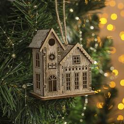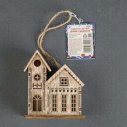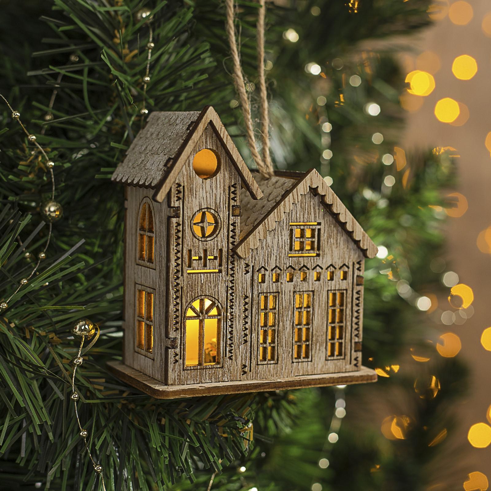 Ёлочная игрушка «Домик с башней», от батареек, свечение тёплое белое