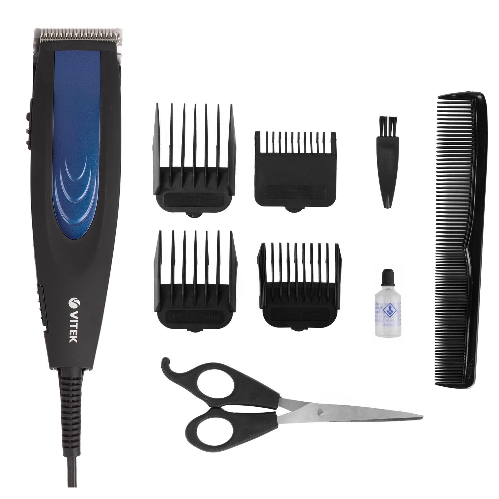 Машинка для стрижки Vitek VT-2576 BK, 5.5 Вт, 4 насадки, от сети, чёрно-синяя
