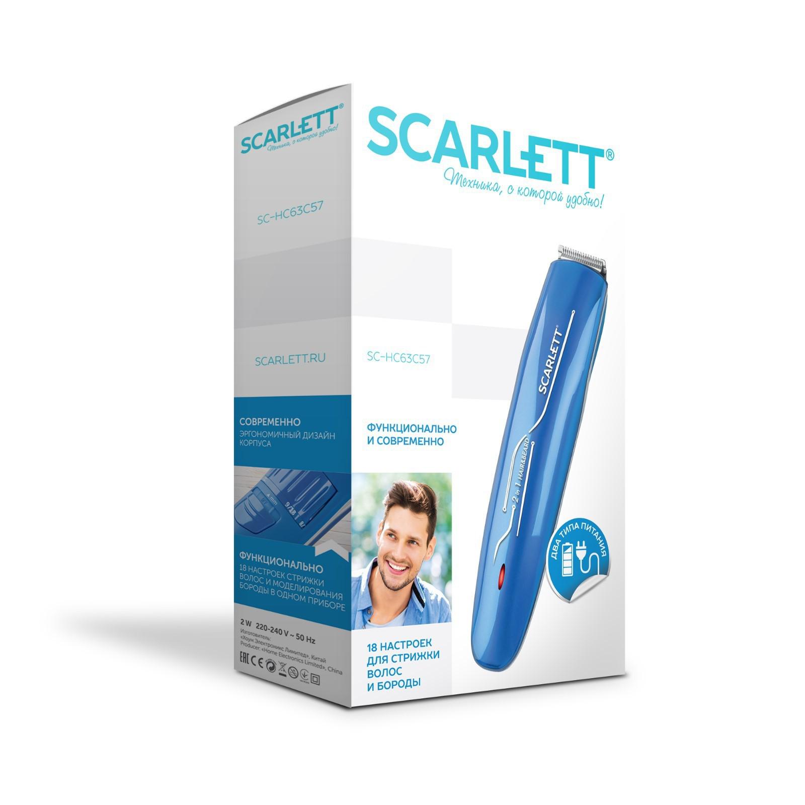 Машинка для стрижки Scarlett SC-HC63C57, 2 Вт, 2 насадки, 1-18 мм, АКБ, синяя