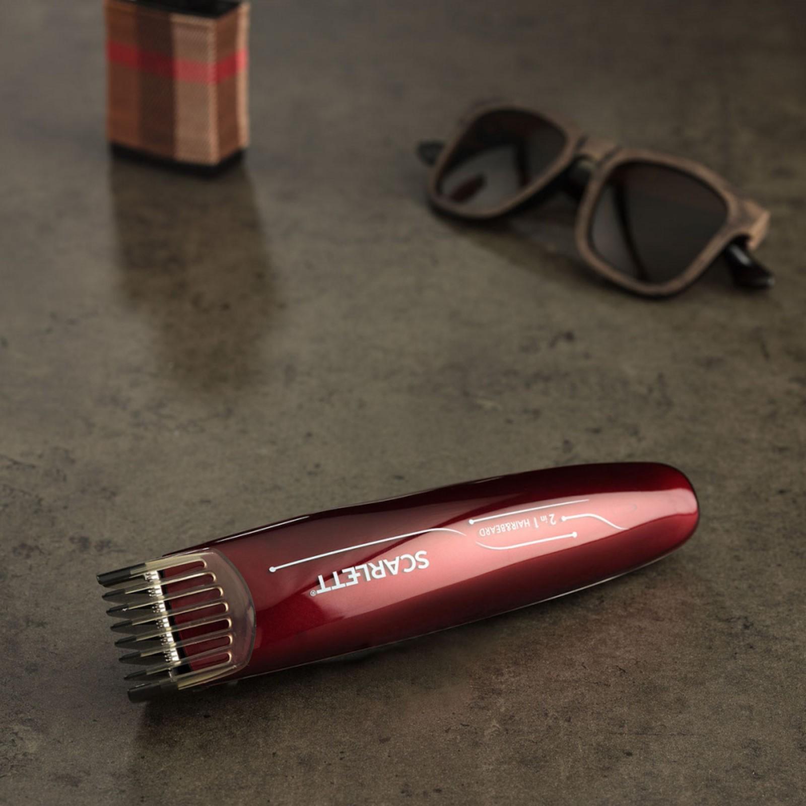 Машинка для стрижки Scarlett SC-HC63C65, 2 Вт, 2 насадки, 1-18 мм, АКБ, красная