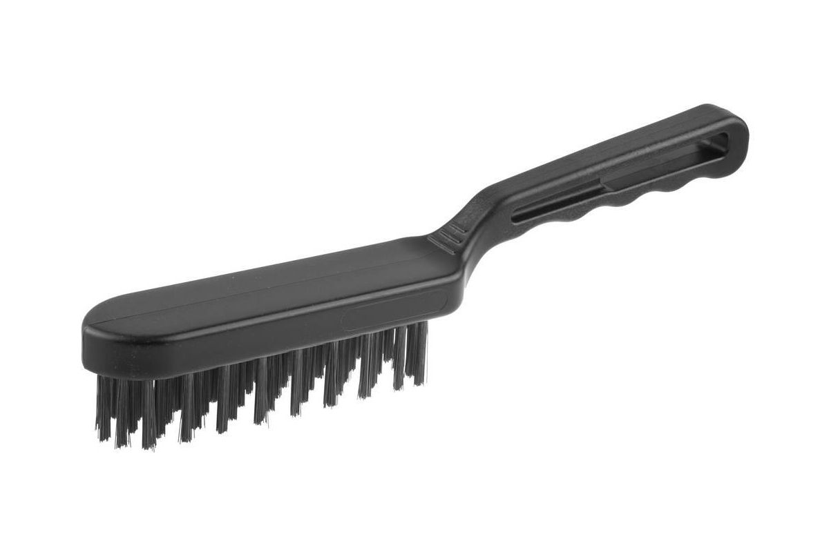Металл, использующийся в щетине, позволяет эффективно удалять ржавчину, любые ЛКМ с металлических, деревянных и других поверхностей