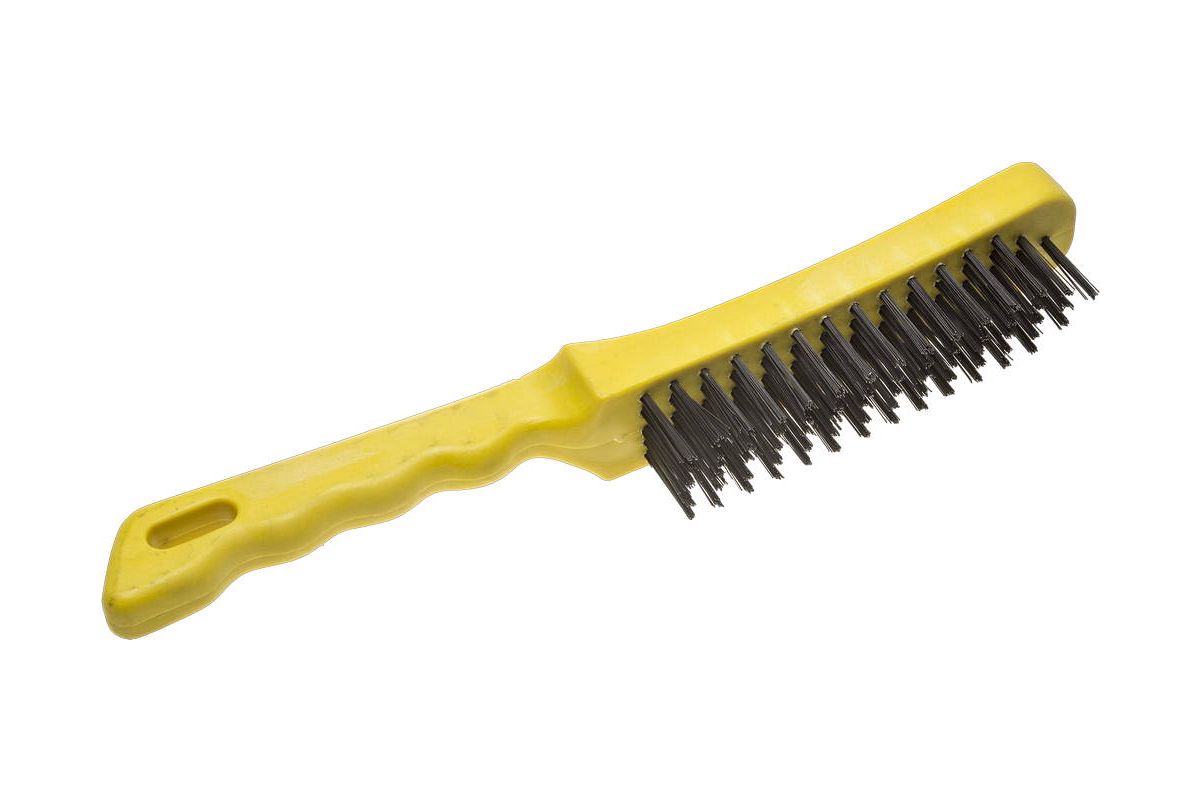 Металл, использующийся в щетине, позволяет эффективно удалять ржавчину, любые ЛКМ с металлических, деревянных и других поверхностей