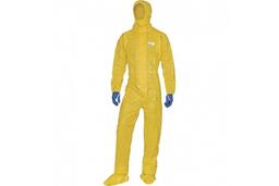 Нетканый материал Deltachem®. Двухзамковая застежка-молния, закрытая двойной планкой. Эластичная резинка вокруг лицевого выреза капюшона, на талии, манжетах рукавов и лодыжках. Двойная резинка для фиксации на пальцах. Индивидуальная упаковка.