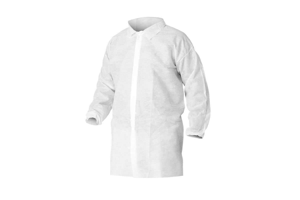 - Халат защитный (одноразовый) на липучках, 110-120см, белого цвета;