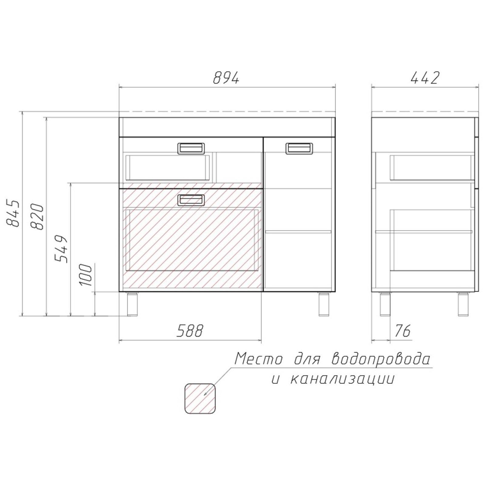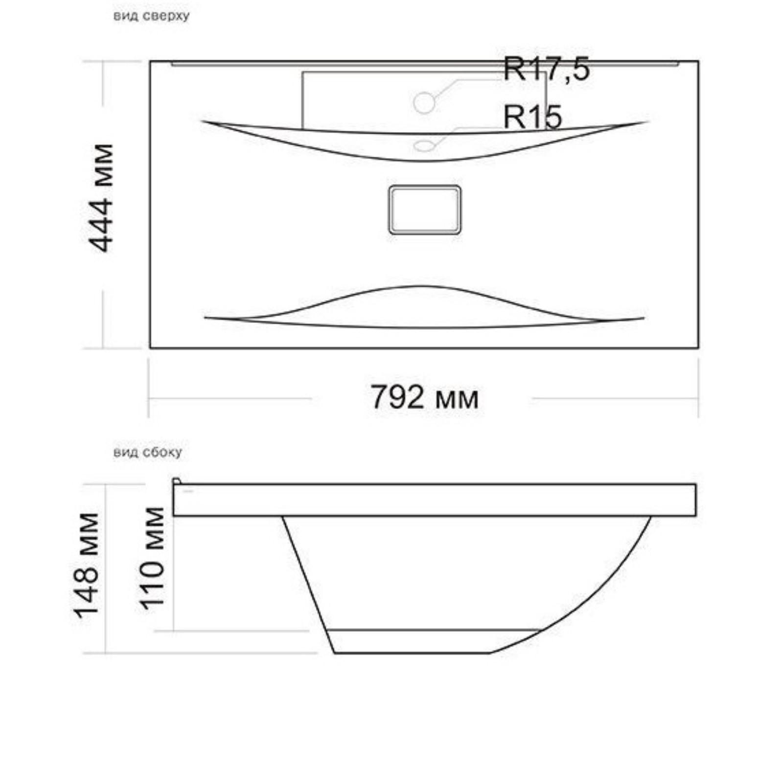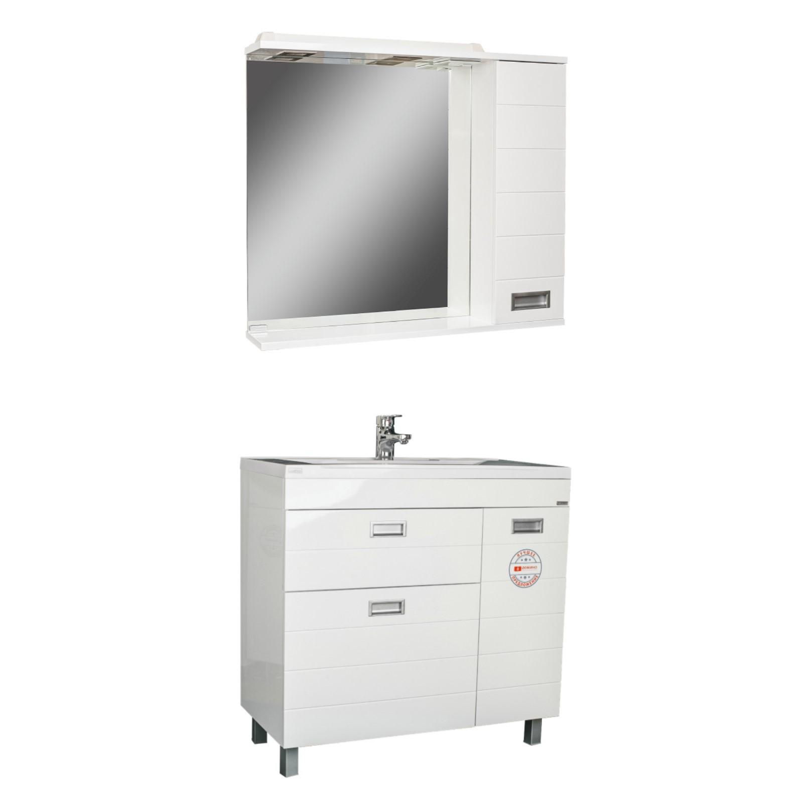 Комплект мебели для ванной "Elen 80" Cube правый с 2 верхними ящиками Домино
