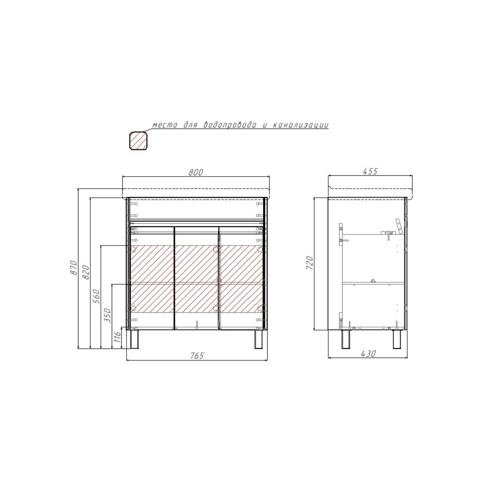 Комплект мебели для ванной "Fest 80" Uno Дуб серый без ящика Домино