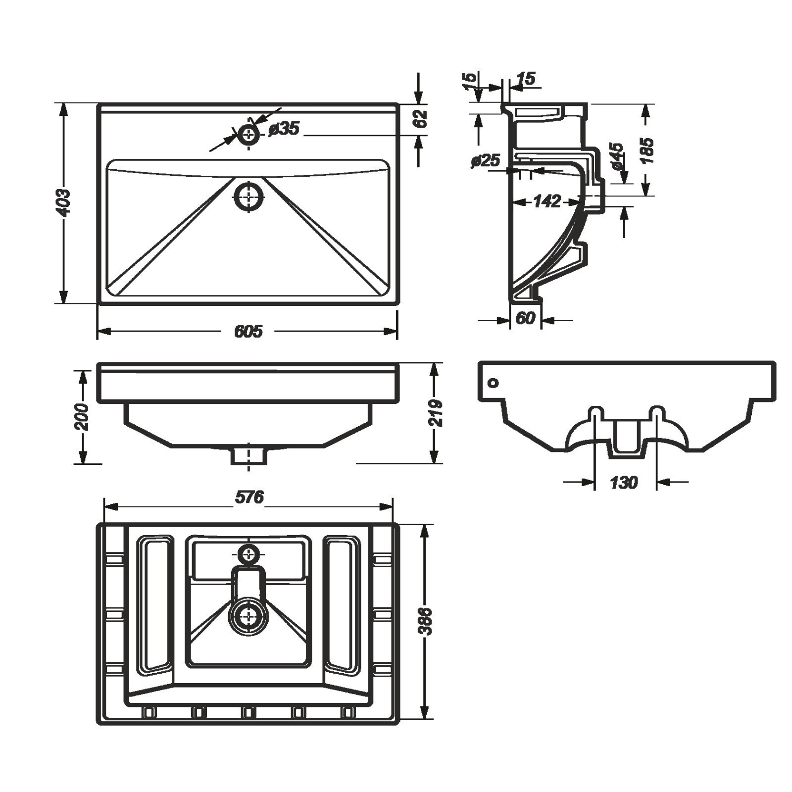 • Форма раковины Прямоугольная