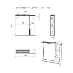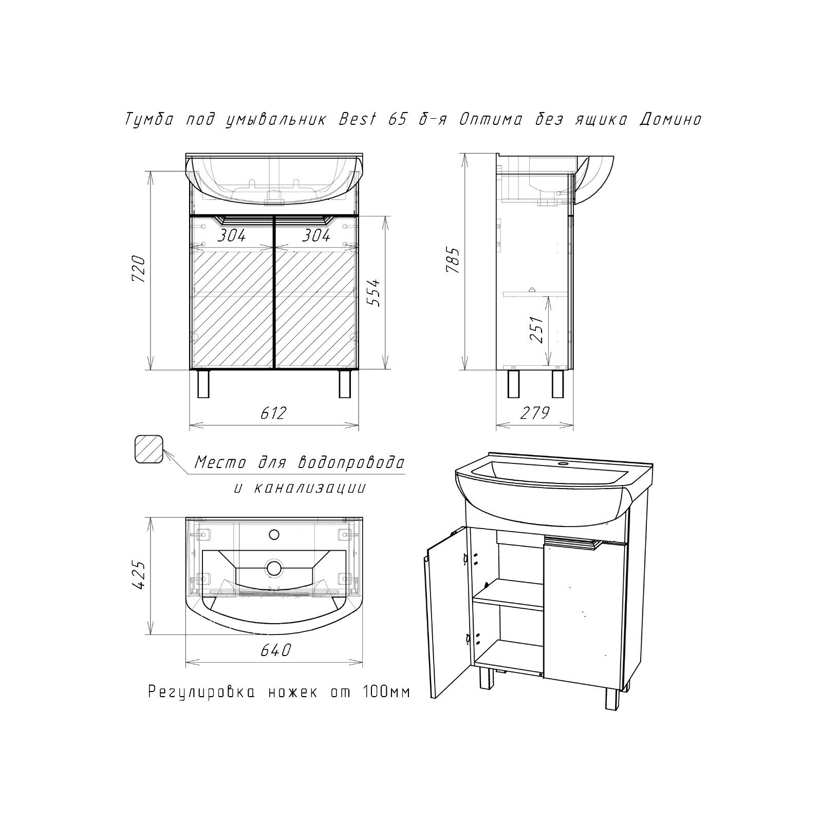 Комплект мебели для ванной "Бест 65 Optima" правый без ящика глянец Домино
