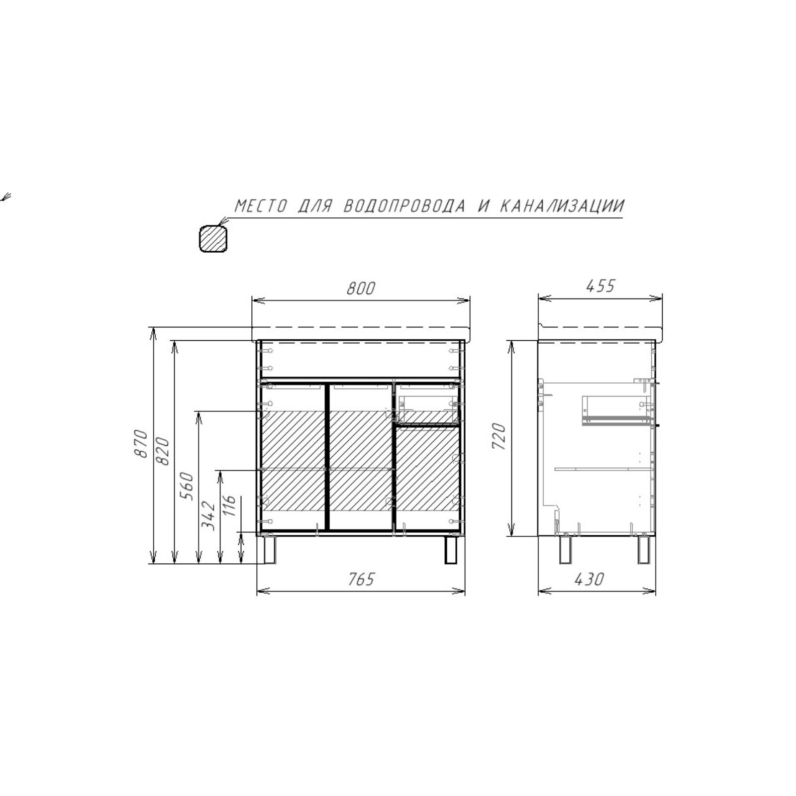 Комплект мебели для ванной "Fest 80" Prime Дуб сонома Домино