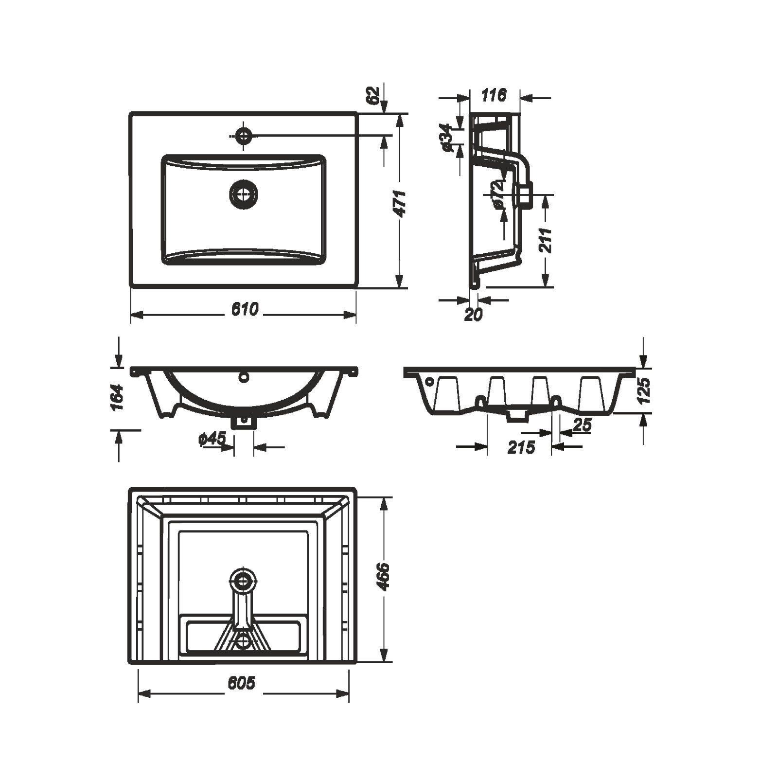 Комплект мебели для ванной "Quadro 60 Optima" без ящика белый Домино