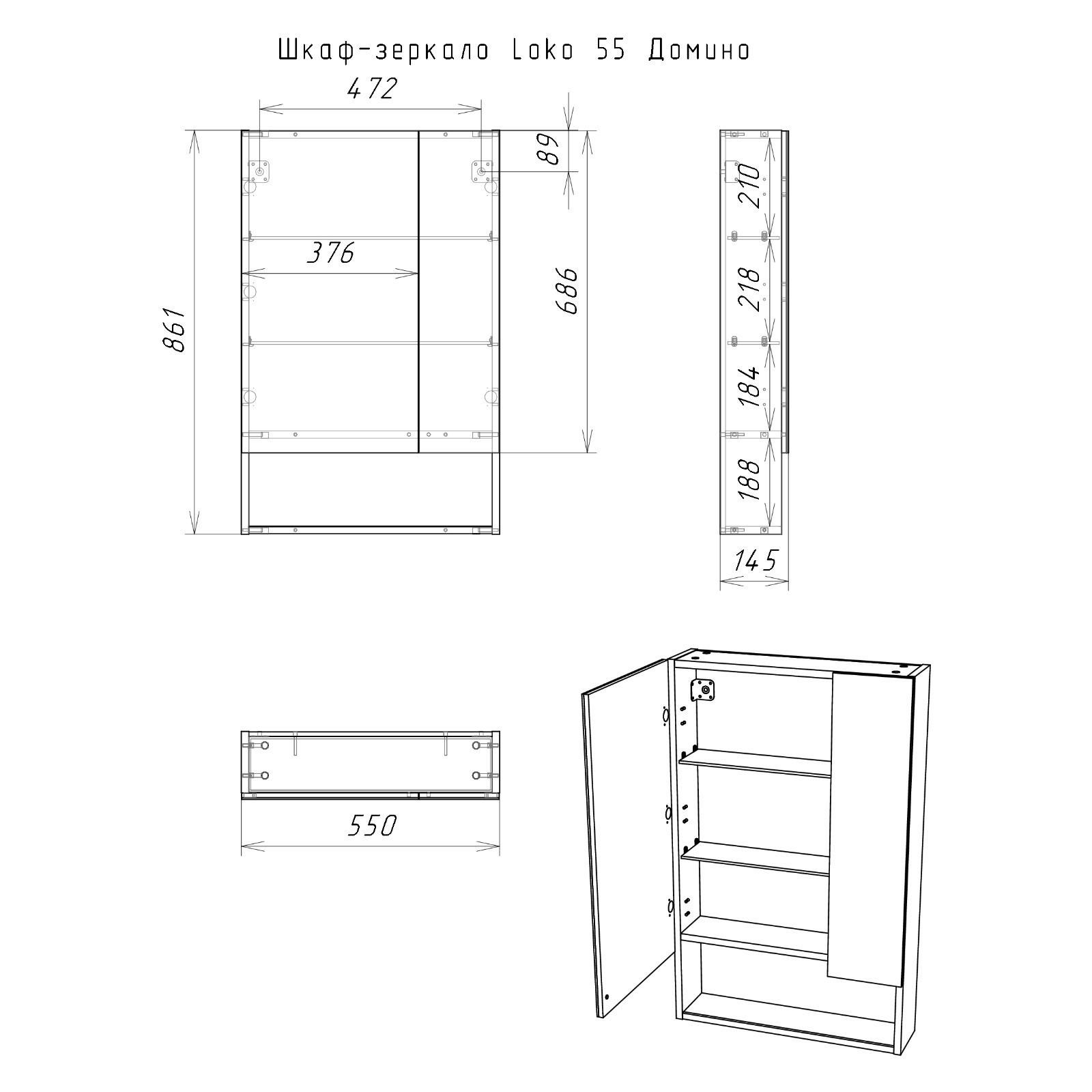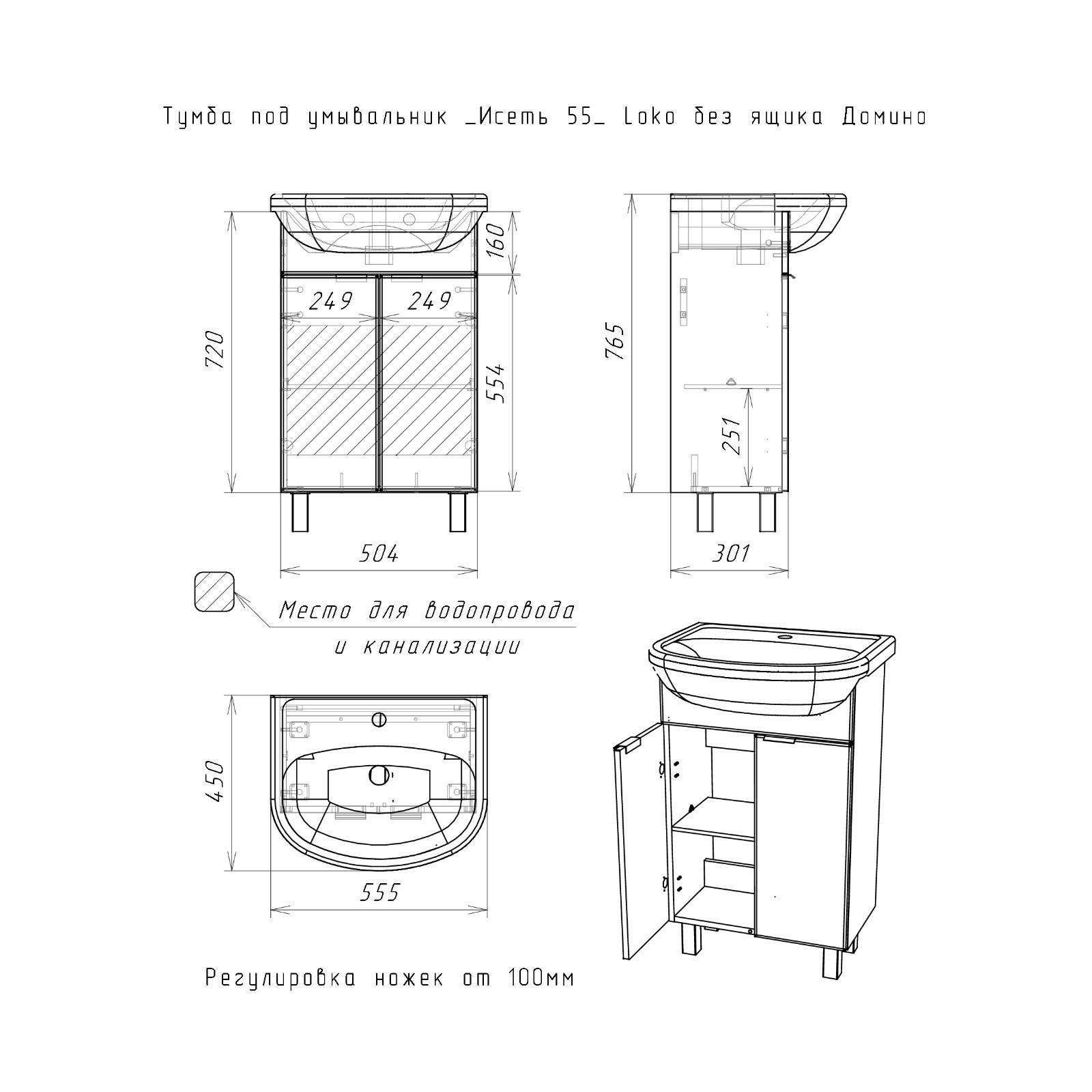 Комплект мебели для ванной "Исеть 55" Loko без ящика Домино