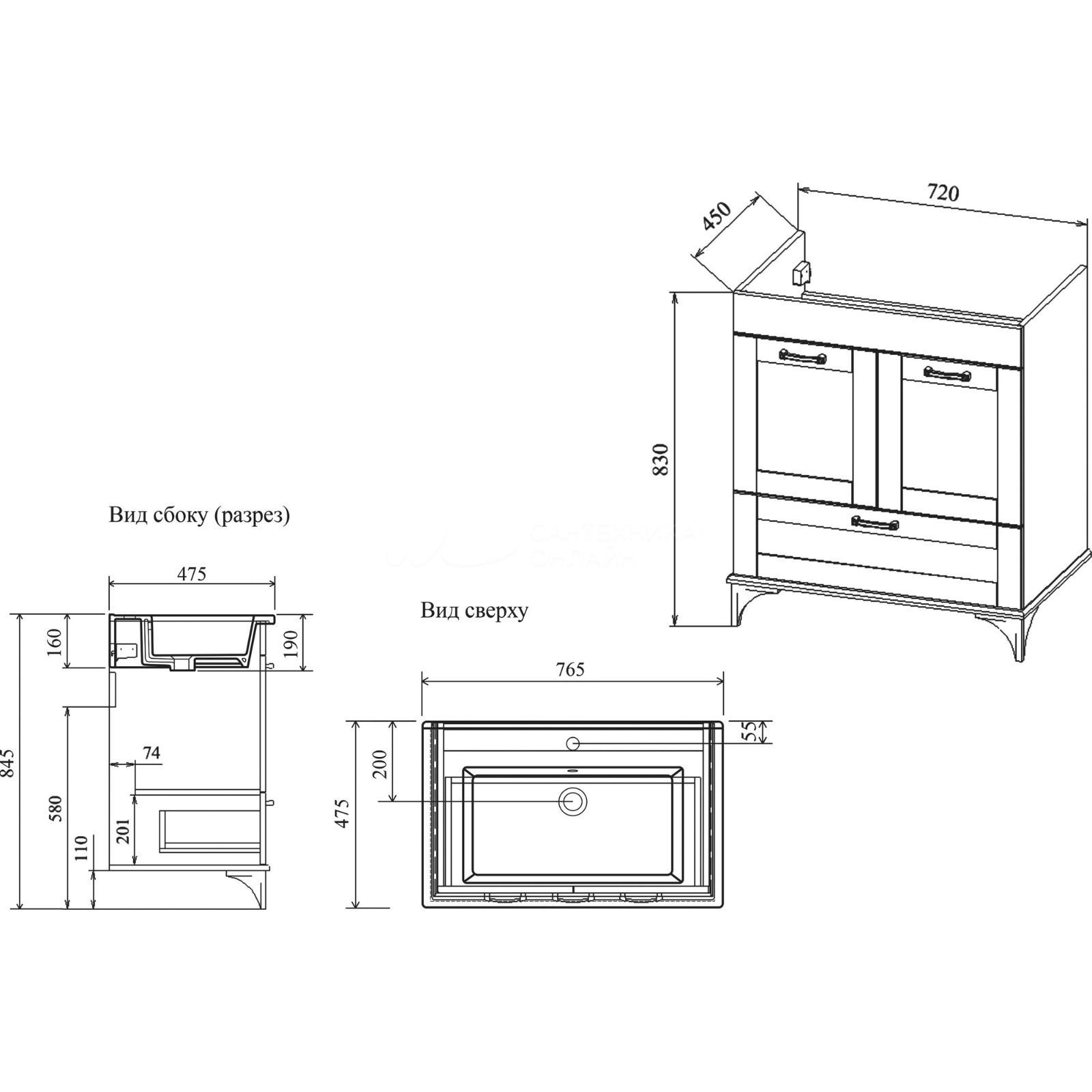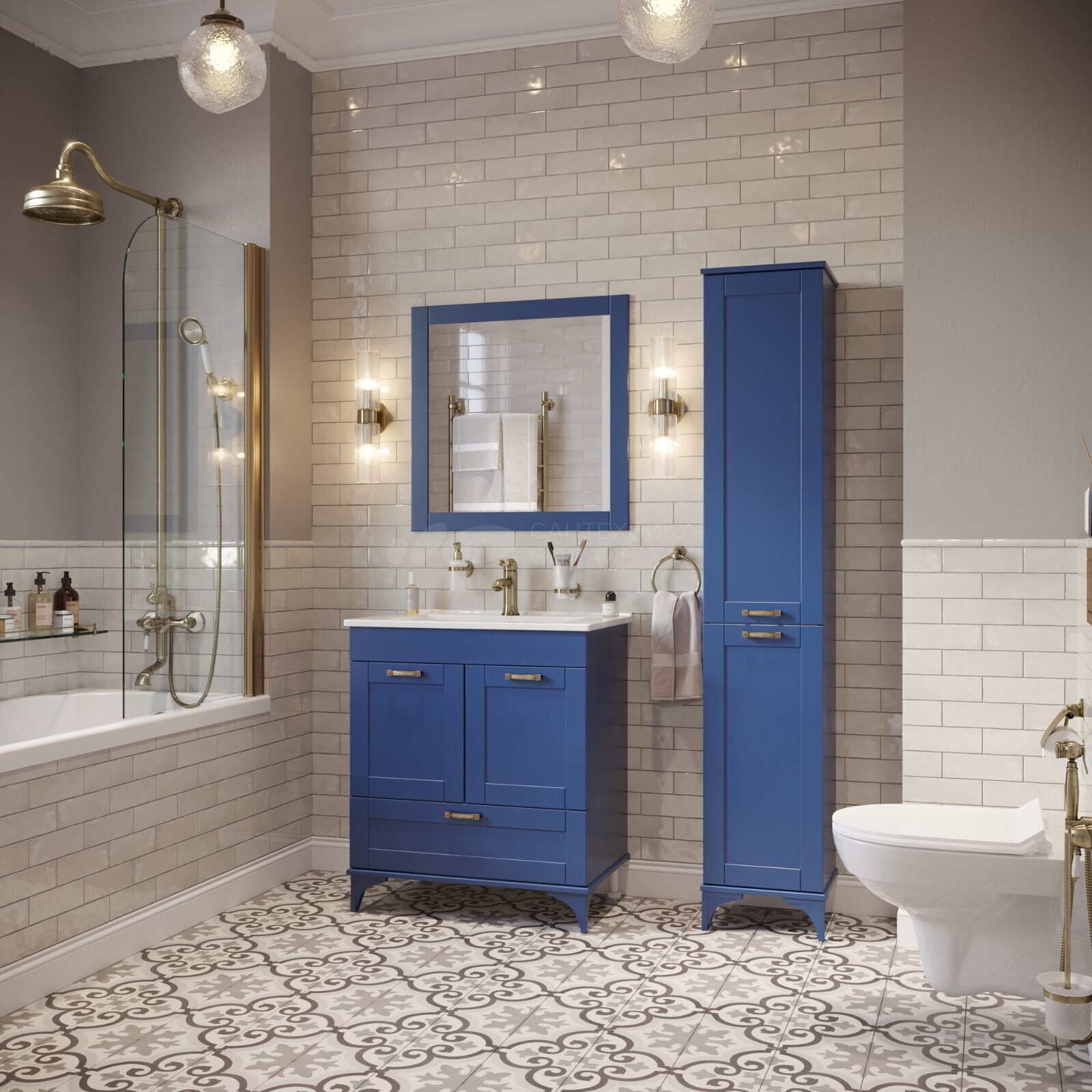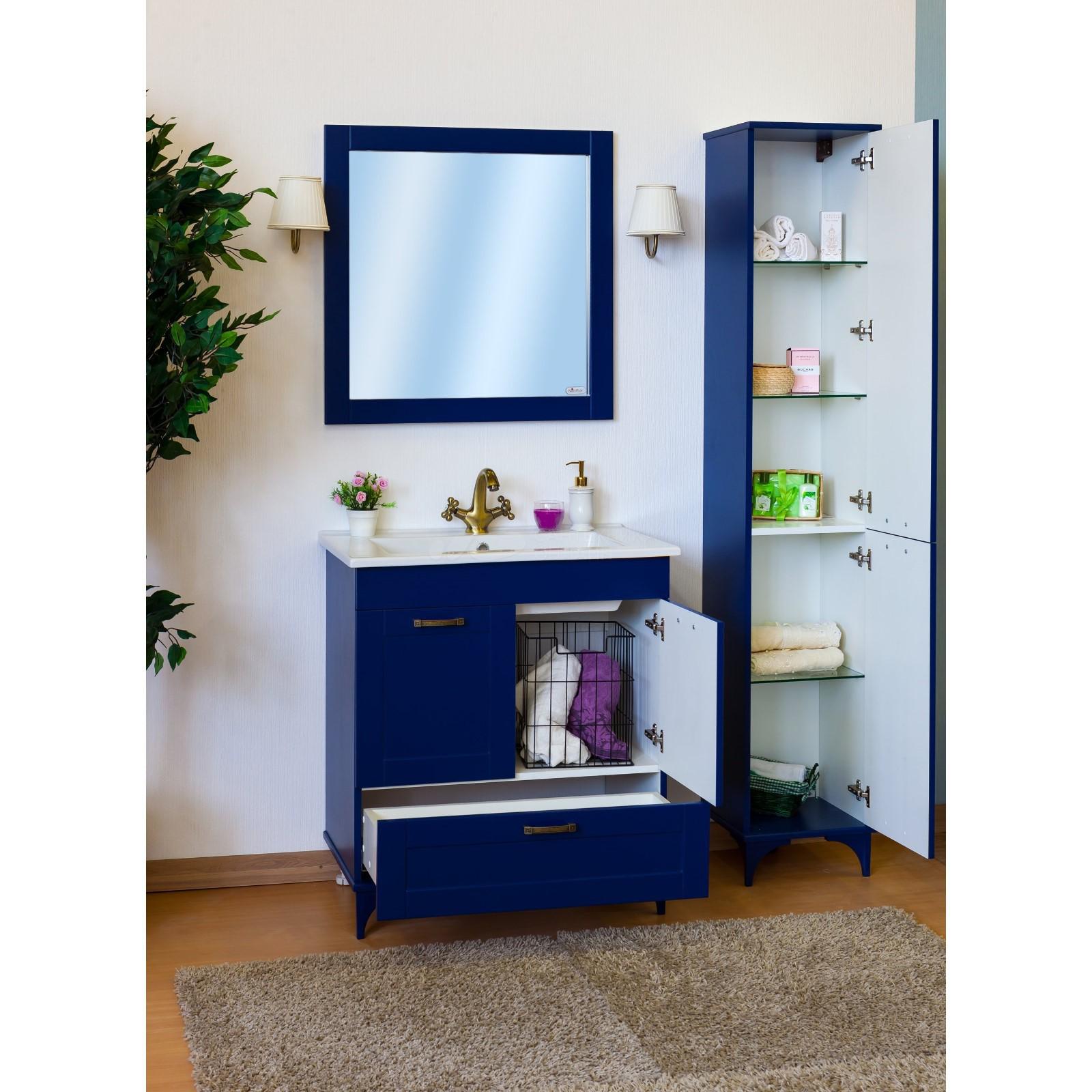 Набор мебели Ванесса 75 индиго: тумба напольная с раковиной Оскар 75 + зеркало
